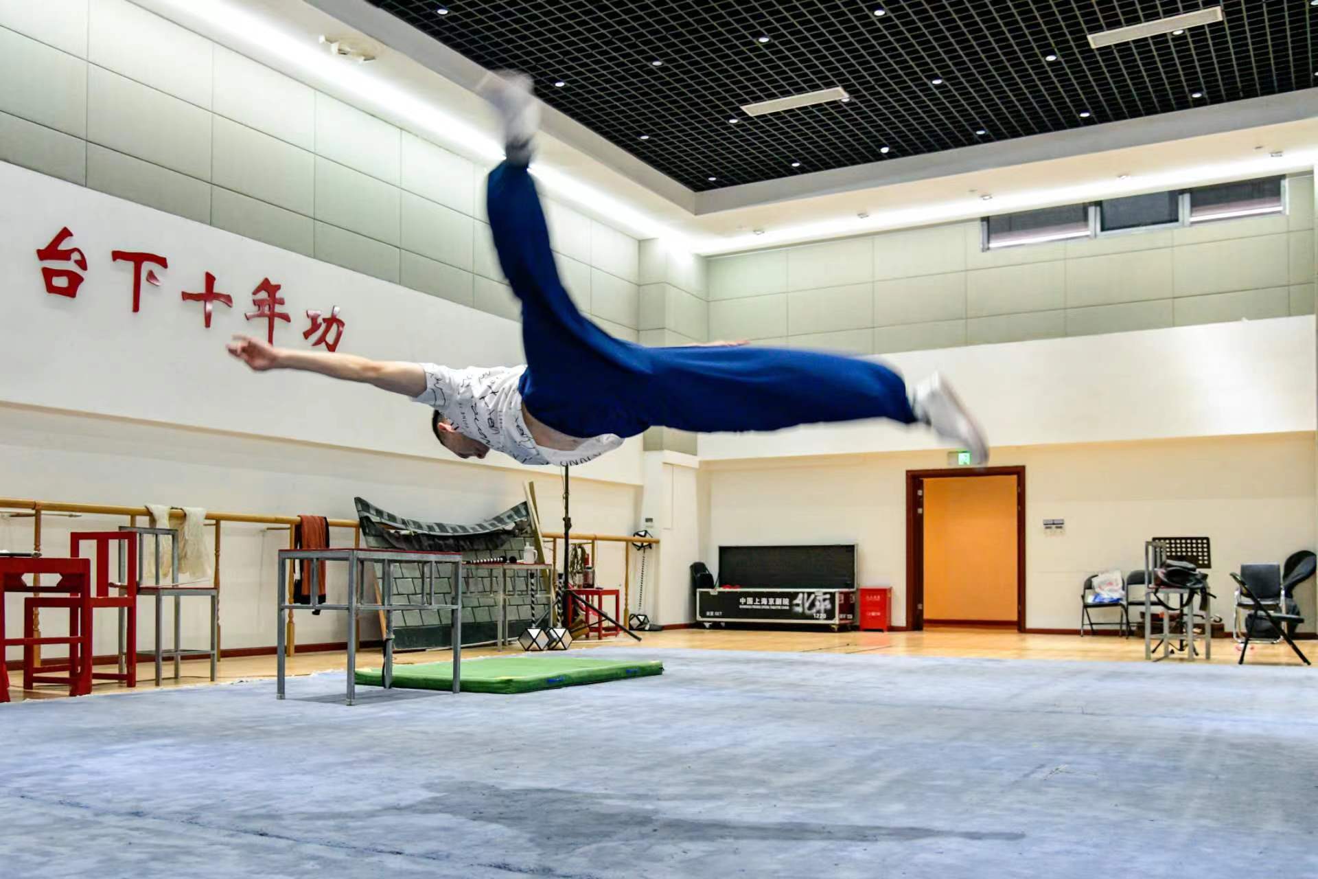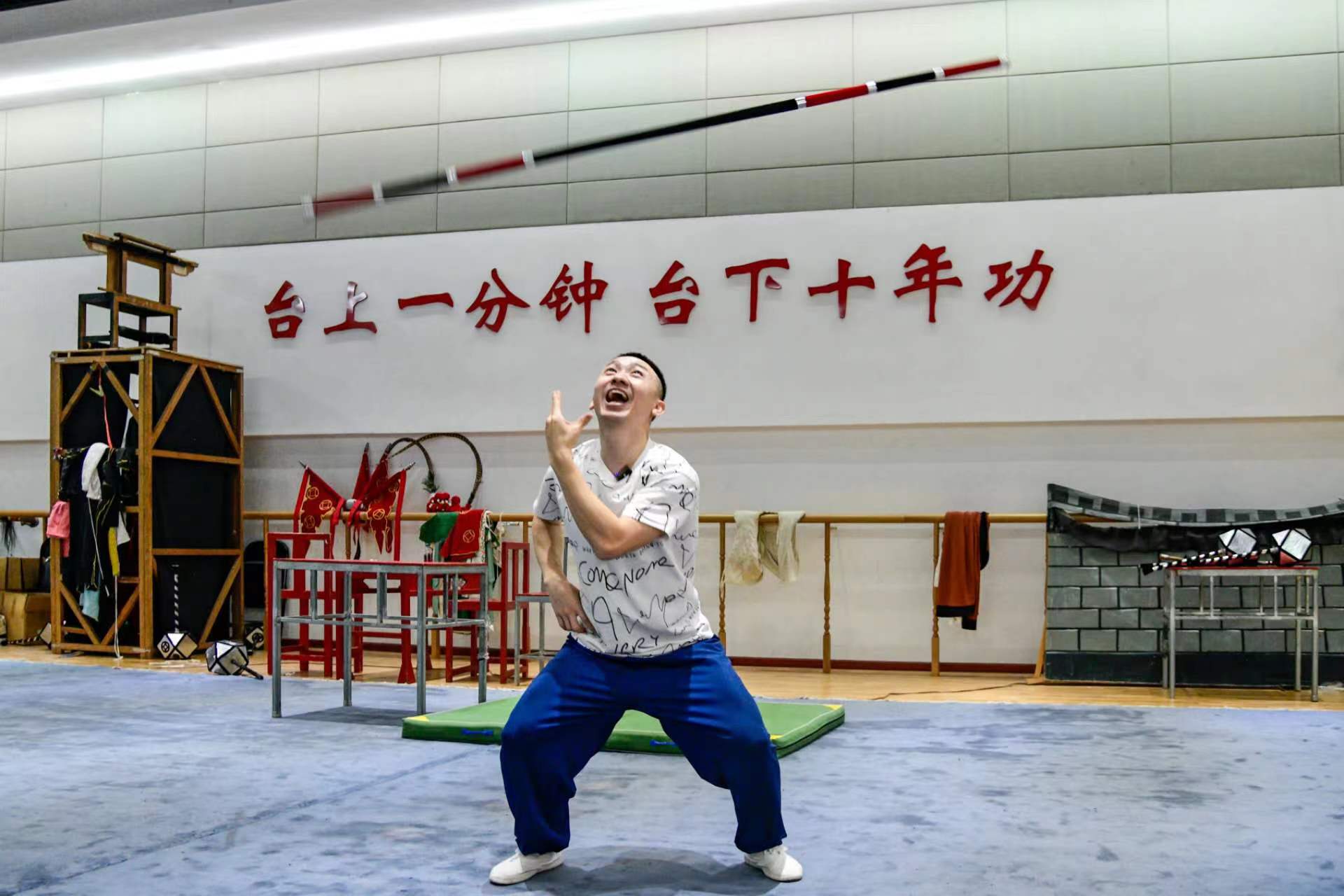 虎跳、鹞子翻身、涮腰、飞脚、扎头旋子……被问起哪个招式最难?郝杰难以给出答案,因为每个动作他都练过千万遍。在练功室 “台上一分钟,台下十年功” 的标语下,郝杰不知撒下了多少汗水,才能把一根金箍棒舞得虎虎生风,才能让豪杰的刀从半空中稳稳落入刀鞘。虽然这些招式不是每次演出都会用到,但郝杰始终记得师傅的话:闲来置,忙来用。只有熟能生巧才能在舞台上熠熠发光。