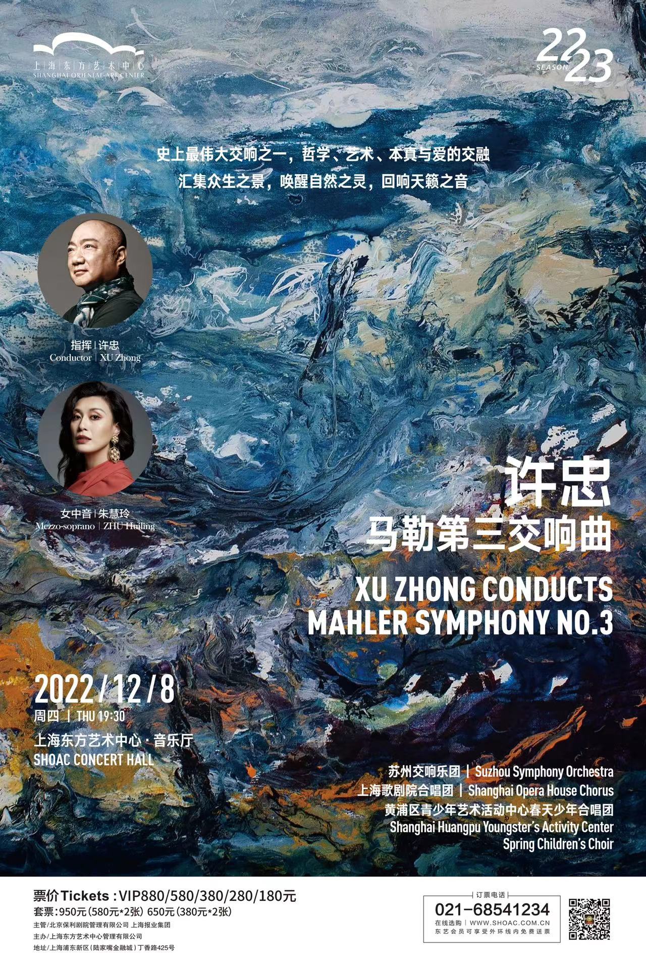 12月8日,马勒第三交响曲这部史诗之作将在首演120周年之际,由指挥家许忠将执棒苏州交响乐团,携女中音歌唱家朱慧玲,以及上海歌剧院合唱团、春天少年合唱团在上海东方艺术中心上演。