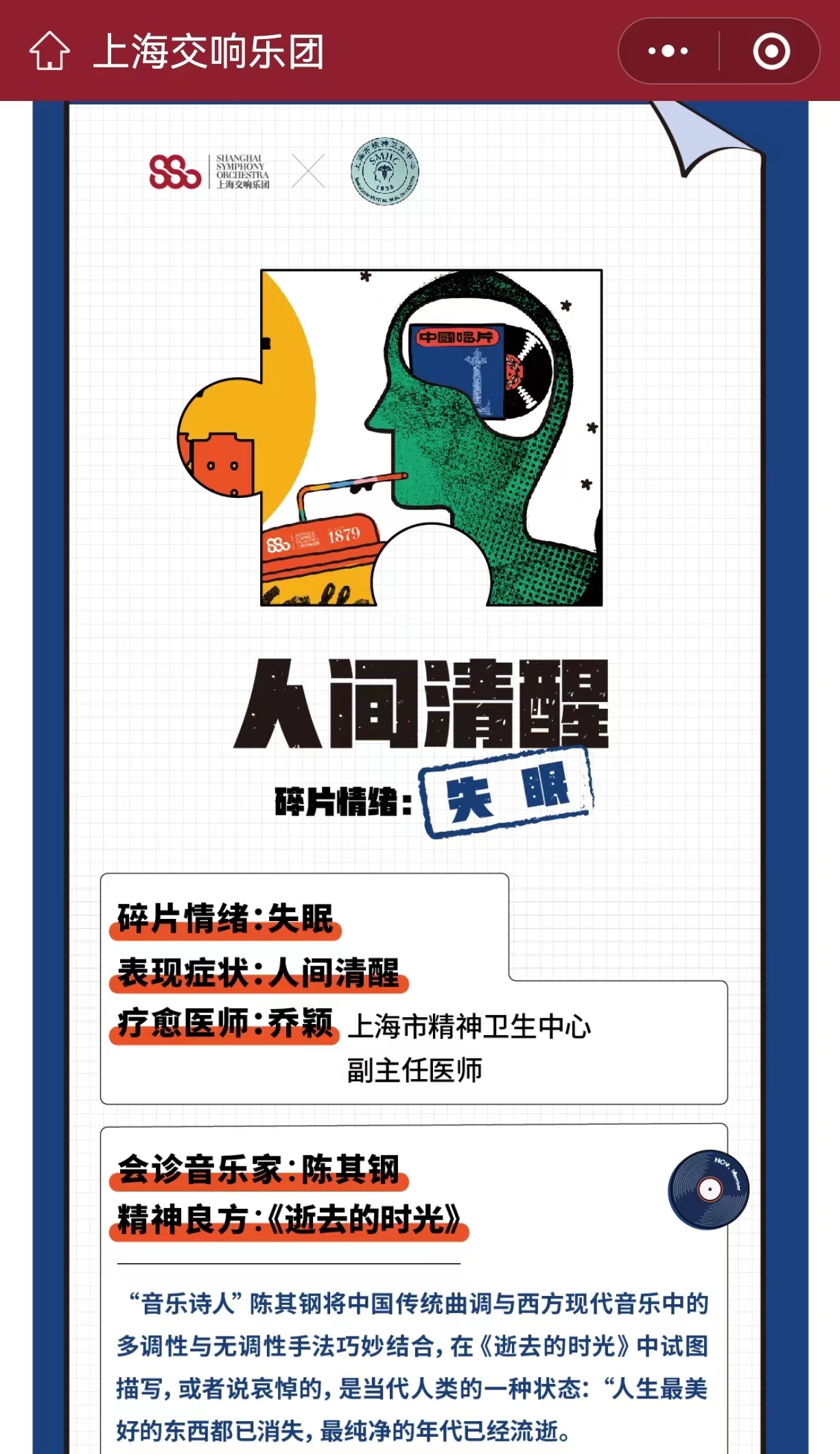 不仅如此,当音乐响起时,画外音里还将响起上海精神卫生中心副主任医师乔颖的相关科普分享。心理专家携手音乐家以“乐”会诊,不仅给咖啡注入了有趣的灵魂,也让大脑补充了精神食粮。