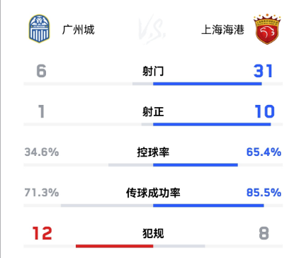 12月4日晚,中超联赛结束第29轮的较量,上海海港以2比1击败广州城,止住了三连败的颓势,也送给了对手了一个七连败。值得一提的是,在经历换帅之后,海港虽然进球不多,但进攻活力明显有所恢复,全场比赛贡献了高达31次射门。