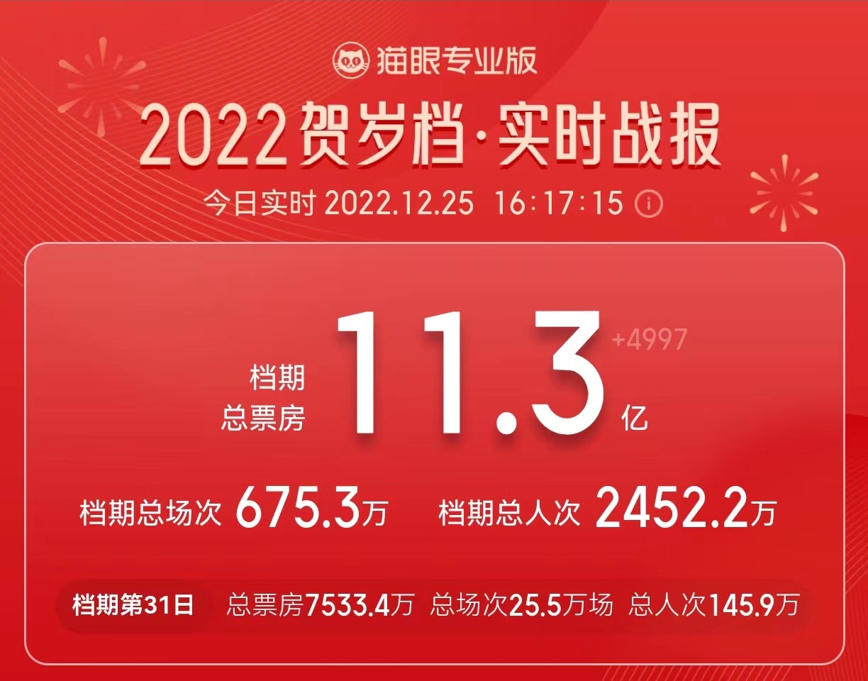 贺岁档作为每年岁末年初的重要档期,历来是各大影片的必争之地,也是推动全年票房的最后力量。2022年贺岁档原本从11月25日启幕,但初期上映的几部影片《因爱而伟大》《航海王:红发歌姬》等一直不温不火,直到12月16日《阿凡达:水之道》公映,才算真正拉开了贺岁档的大幕。