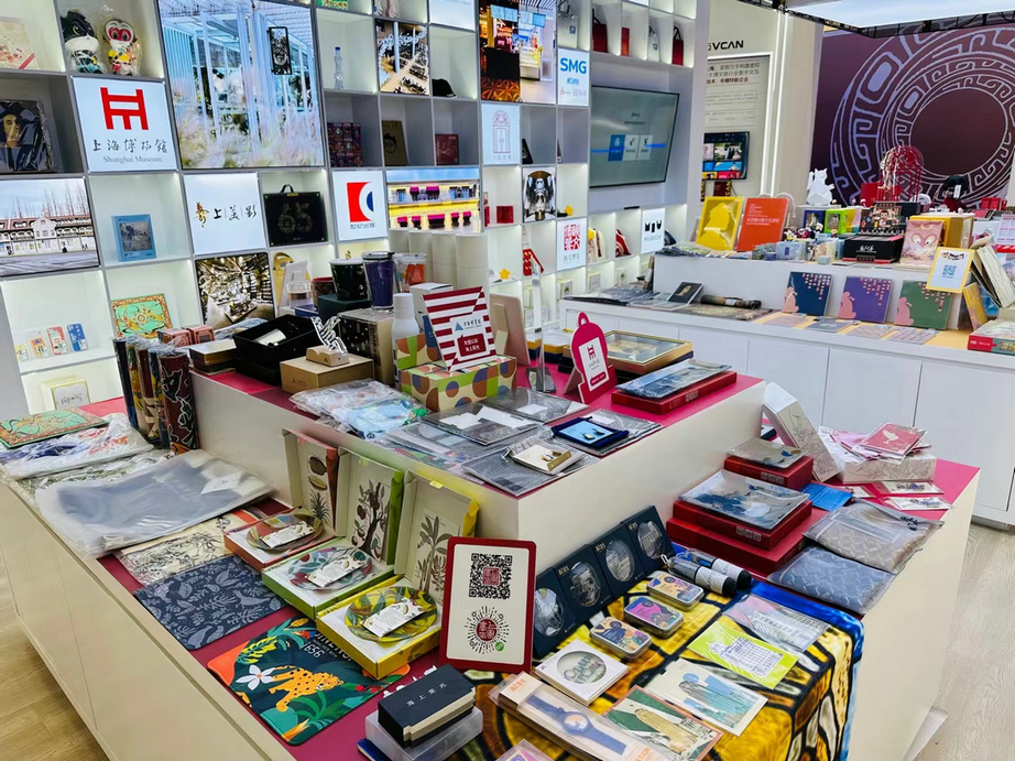 “文创集市”上,琳琅满目的文创产品引人驻足。来自中共一大纪念馆“一大文创”的树德里笔记本、红色宝珠笔、《伟大精神铸就伟大时代》纪念封,来自东方明珠集团的趣味马克杯,来自上海博物馆的“宅兹中国”系列产品、上海图书馆的“海上荣光”系列文创……可见上海红色文化、海派文化、江南文化融合的独特魅力。
