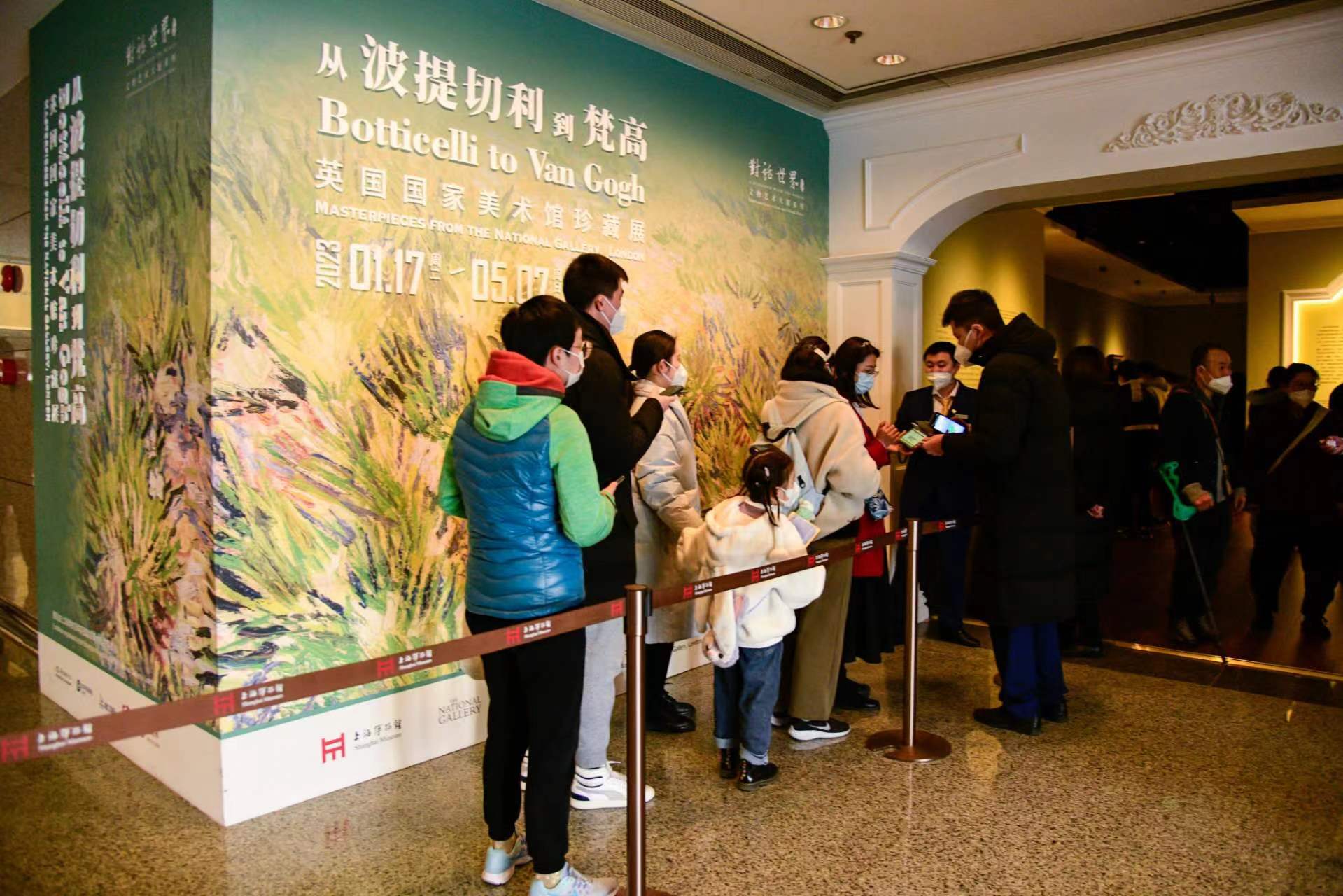1月18日,恰逢上海中小学生迎来寒假第一天,上海博物馆的入场口一早就排起了长队。尽管是工作日,仍有不少美术爱好者带着孩子前来。记者从上海博物馆了解到,截至下午17点,当日迎接客流4568人次,其中“从波提切利到梵高:英国国家美术馆珍藏展”约2100人次,占全馆参观人数的近半数。