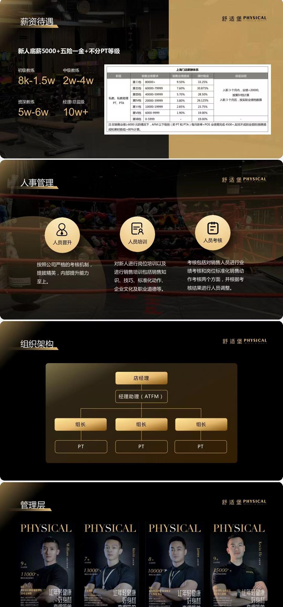 实际上,在去年疫情期间,市健身健美协会就多次组织线上培训会议,希望帮助健身企业积极转型,并与高校搭建人才就业平台,为企业输送人才,为高校解决就业,为学生指导方向。据记者了解,健身企业为教练开出的薪水与职业能力和岗位等级挂钩。舒适堡开出的条件为底薪5000+五险一金+部分PT等级,珀曼健身开出的薪水为8000元-3万元。