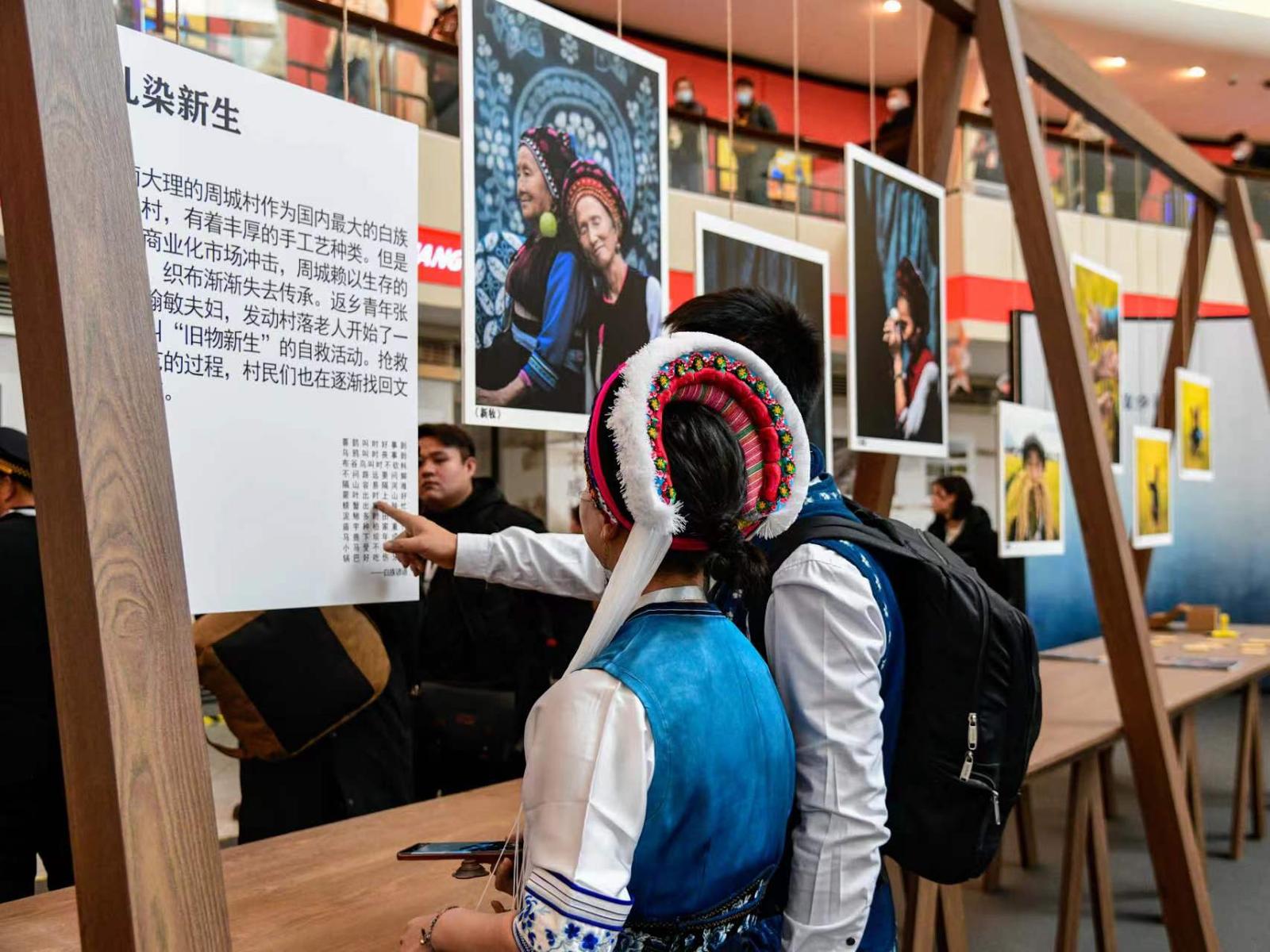 展览现场,记者遇到了来自云南大理的公益人张斌,十年以来,他带领村里的老人和孩子,让白族扎染走向了世界舞台。为了参加这次展览,他还特意穿上了白族服饰,“希望通过这个展览,让更多人看见我们所做的事情是有意义的。”