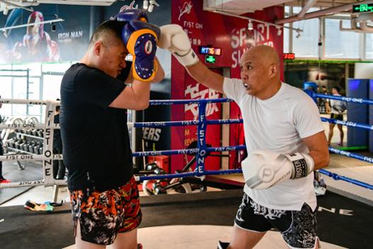 这名退休职工名叫陆鹏飞,退休前在金融系统工作。他告诉记者,自己比较喜欢健身,跑步、游泳之前都有过尝试,1年多之前快要退休时才接触泰拳,“我觉得,健身就是要暴汗,运动量提高了才有锻炼的效果。不出暴汗的话,运动只是稳定你原来的身体基础,只有刻苦才能慢慢提升身体状态。当然了,这要有一个循序渐进的过程,你不能以前从来不练,突然练到很累很累,这个要伤身体的。”