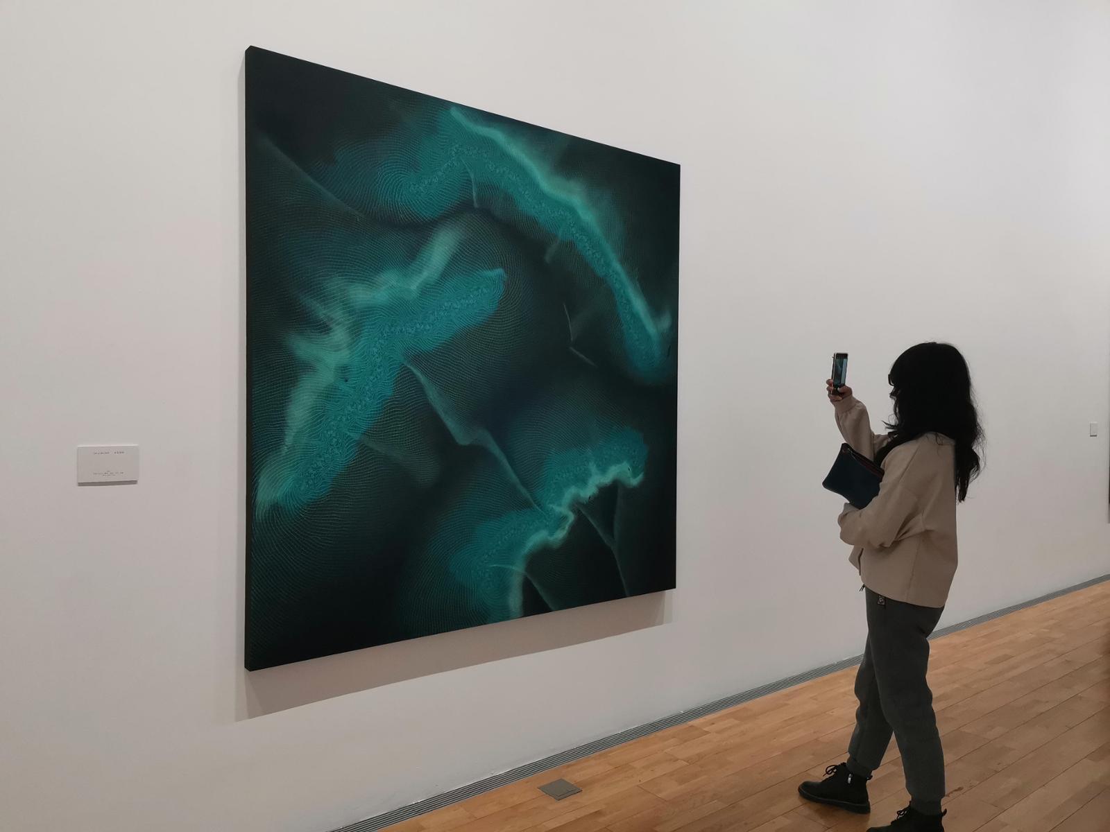 展览标题象征着由根茎和潜在路径构成的一个不断扩张、长而不辞的网状脉络。现场,赫什阿里原本想要亲自做一下导赏,但在讲解了两幅作品之后,她认为,观众的自我感受更为重要,“身心准备好,沉浸到作品当中,才能领略到与众不同的地方。”