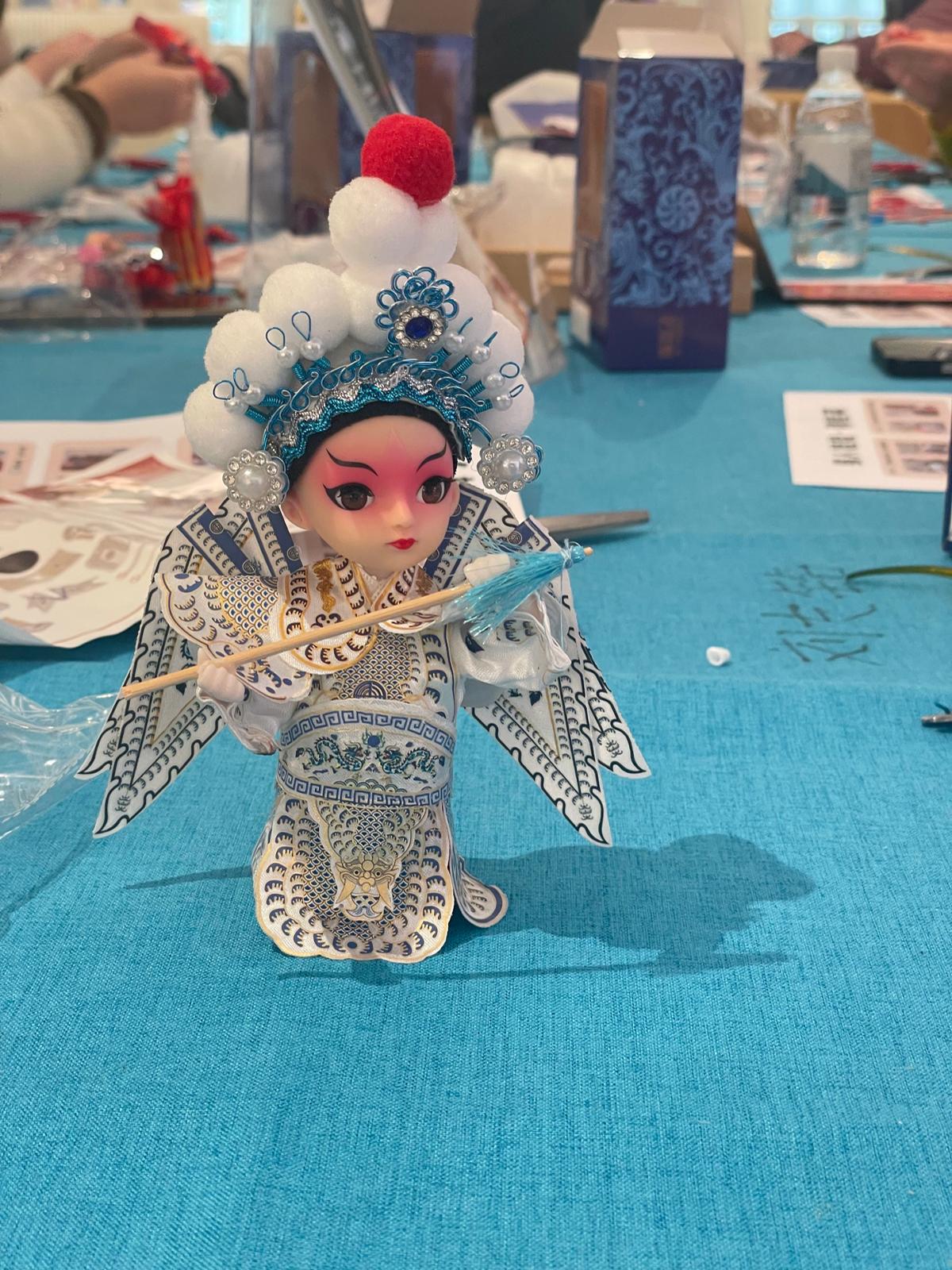 国潮手作也颇受欢迎,3月8日当天,除了大剧场的演出,宛平剧院三楼的共享大厅就变成了国潮海洋。不少职工在工作人员的耐心解说下尝试亲手制作戏曲娟人娃娃,有人忙着为手中的“穆桂英”梳妆,有人忙着为“杨宗保”披甲,体验的过程里帮助大家进一步了解了戏曲知识。