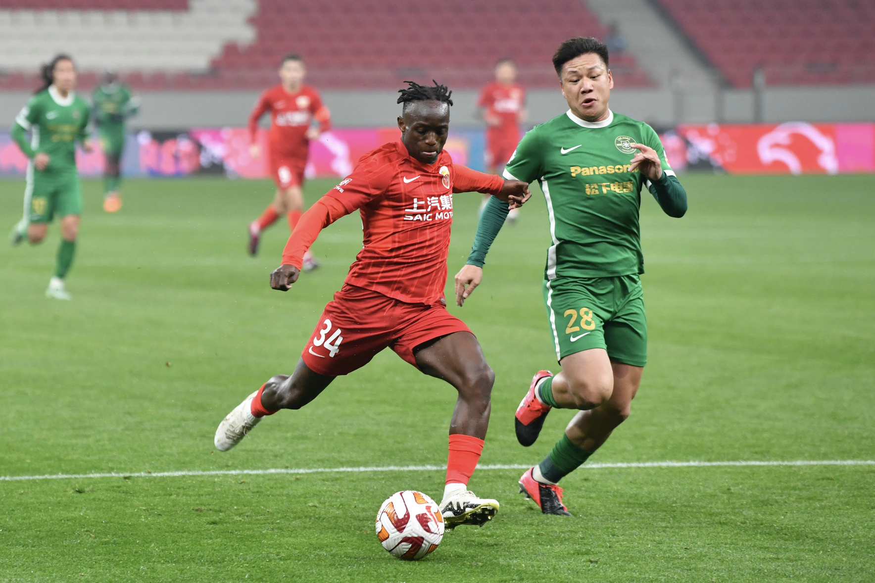 武磊(右)与对手争抢 劳动报记者贡俊祺 摄影