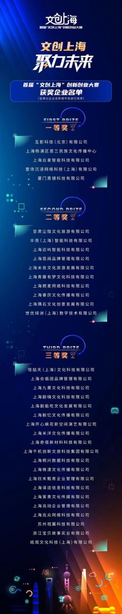 首届“文创上海”创新创业大赛获奖企业名单。主办方供图