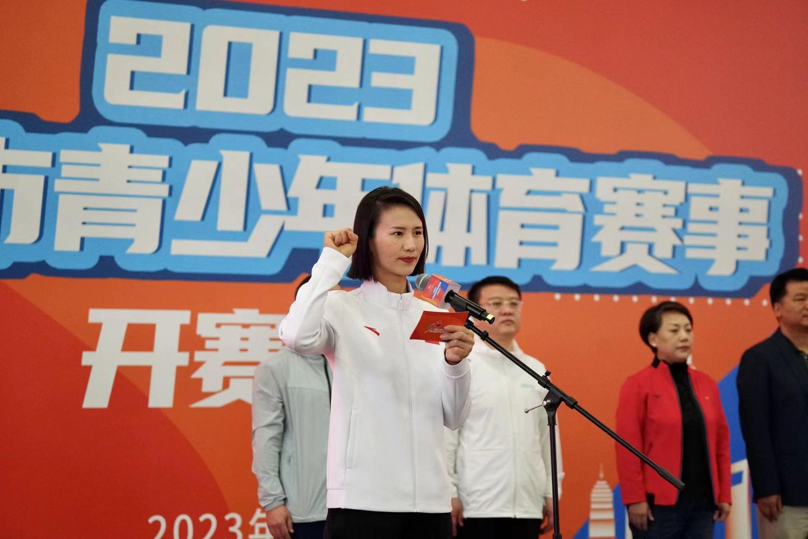 仪式上发布了2023年度青少年体育赛事竞赛计划和主视觉系统;本市16个区体育行政部门负责人向市体育局党组书记、局长徐彬递交了《2023年上海市青少年体育赛事赛风赛纪和反兴奋剂承诺书》;帆船奥运冠军徐莉佳带领全体青少年运动员进行了宣誓,教练员代表、裁判员代表也分别进行宣誓;在当天开赛的上海市青少年体育精英系列赛田径比赛上,组织开展了“拿干净金牌”——上海市青少年体育赛风赛纪和反兴奋剂教育拓展主题活动。