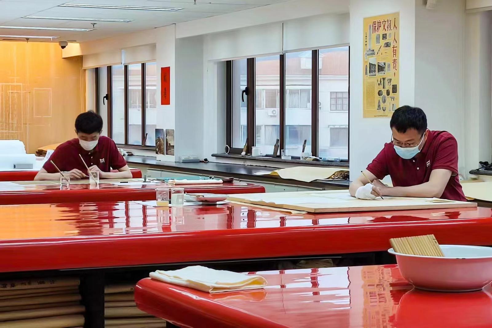 上海博物馆文物保护科技中心书画装裱区。劳动报颜筱依 摄影