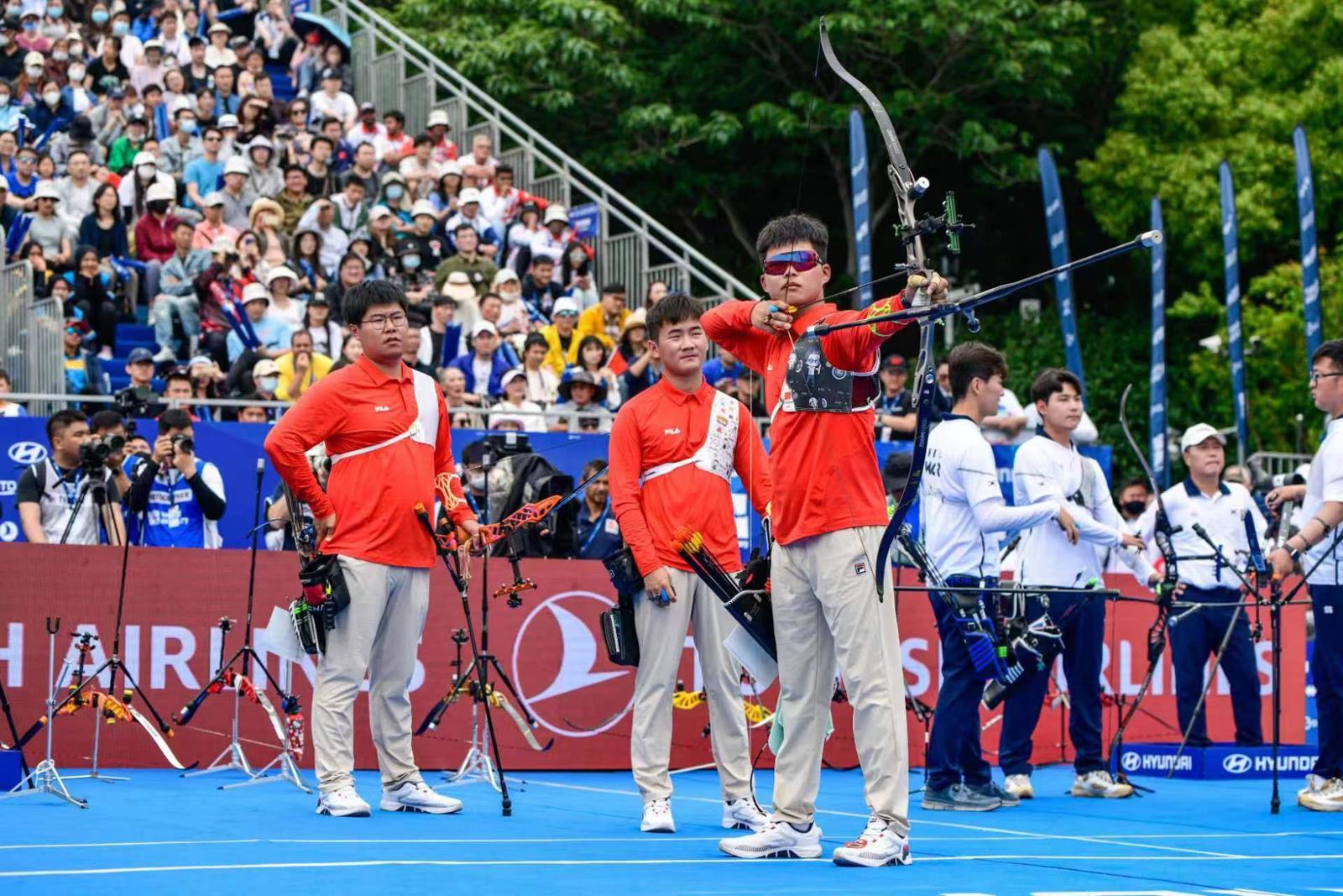 头图为中国队在2023射箭世界杯赛上海站决赛中。颜筱依 摄影