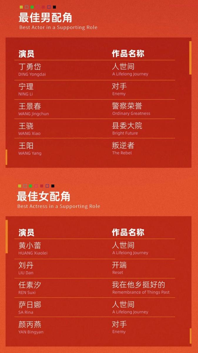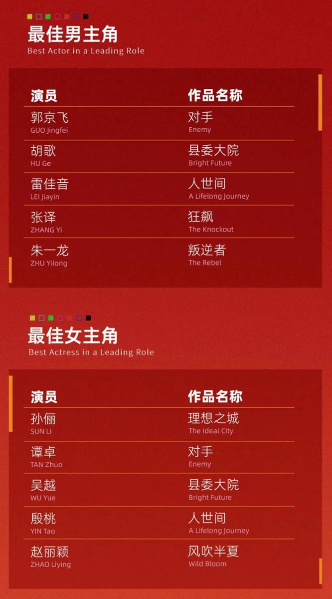 《超越》、《大决战》、《大考》、《对手》、《风吹半夏》、《风起陇西》、《功勋》、《警察荣誉》、《开端》、《狂飙》、《理想照耀中国》、《理想之城》、《梦华录》、《乔家的儿女》、《人生之路》、《人世间》、《三体》、《天下长河》、《我们这十年》、《我在他乡挺好的》、《县委大院》、《幸福到万家》入围最佳中国电视剧。