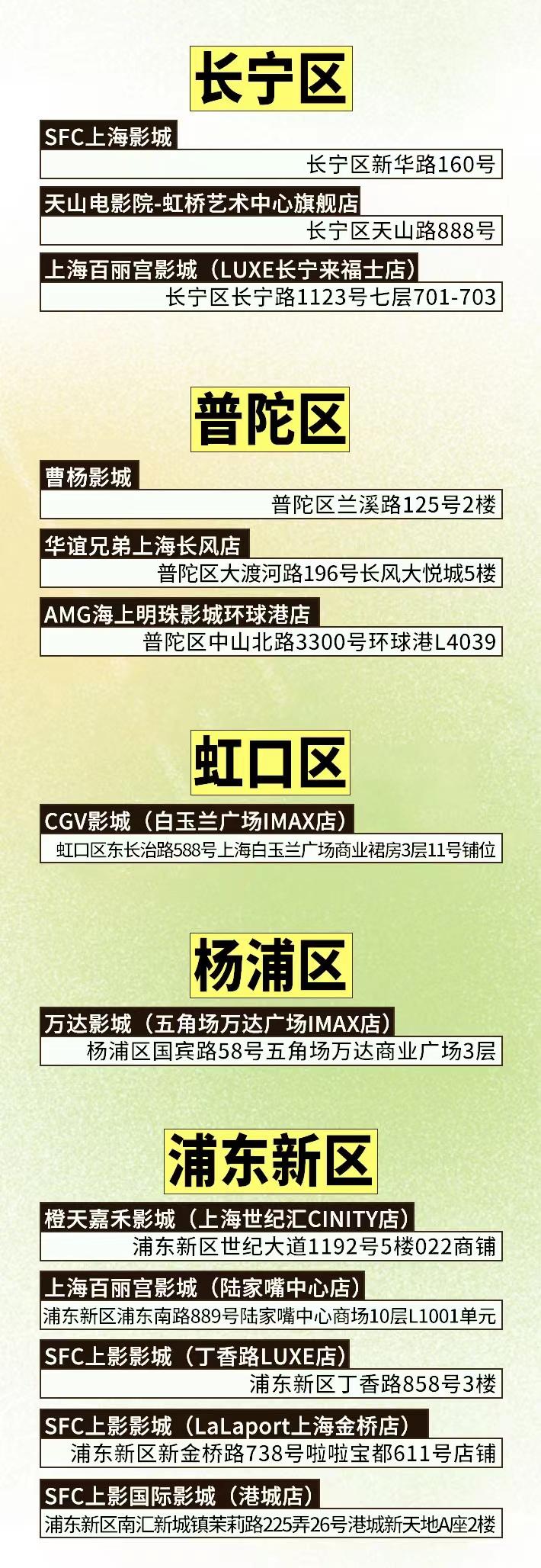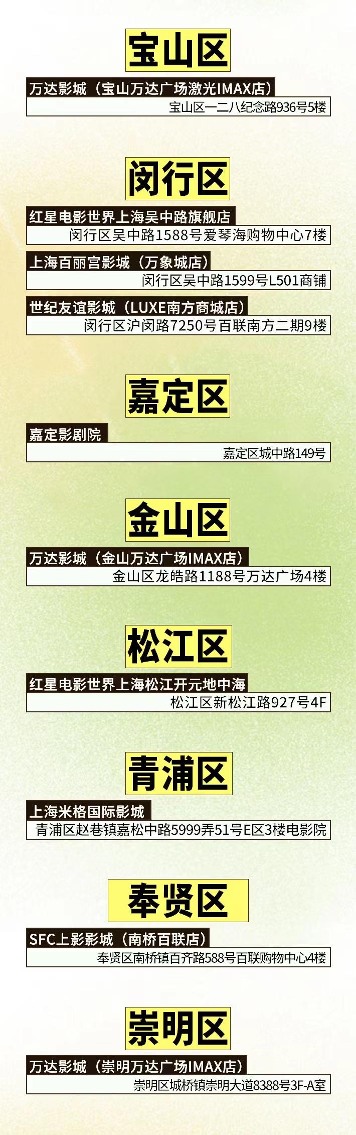 值得一提的是,在上海影院领先全国完成技术升级迭代后,此次入围的展映影院都拿出了高科技影厅参与放映。41家影院的50个影厅中,不乏Dolby、LUXE、IMAX、Onyx、RealD、CINITY等高科技影厅,将进一步提升市民观众的观影体验。