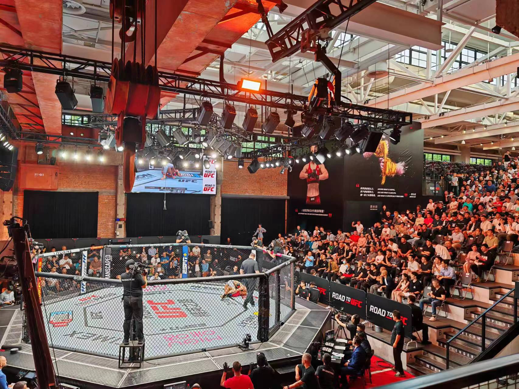 UFC精英之路也是UFC相关赛事自2019年后首次回到中国。虽然“精英之路”有一些选拔赛性质,但UFC方面非常重视。UFC高级副总裁兼亚洲区负责人张卓麟介绍,赛事面向全球直播,单单从海外来到上海的工作团队就超过50人,远在美国的拉斯维加斯,还有另一支团队,在围绕比赛数据统计等方面做相关的工作。