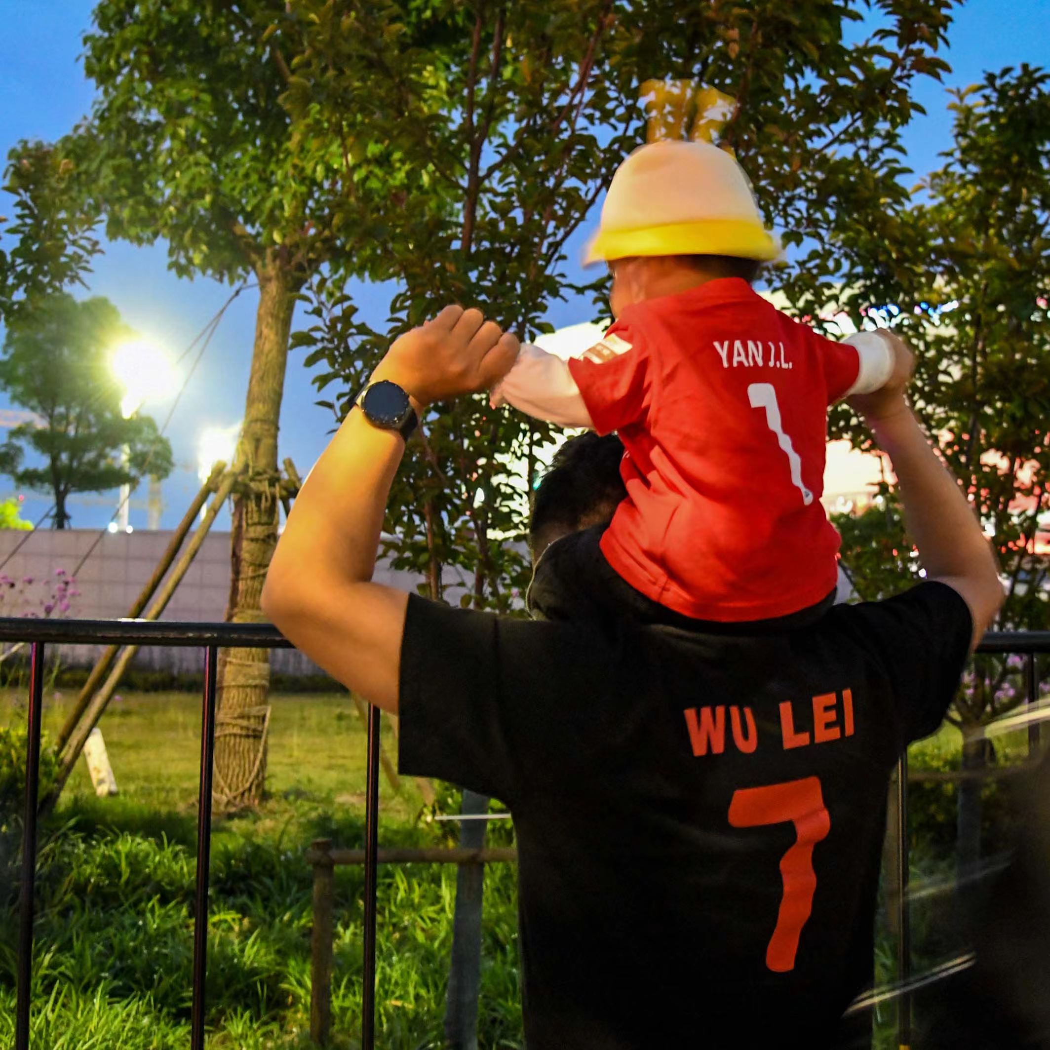 助威父子兵,看球也传承。劳动报颜筱依 摄影