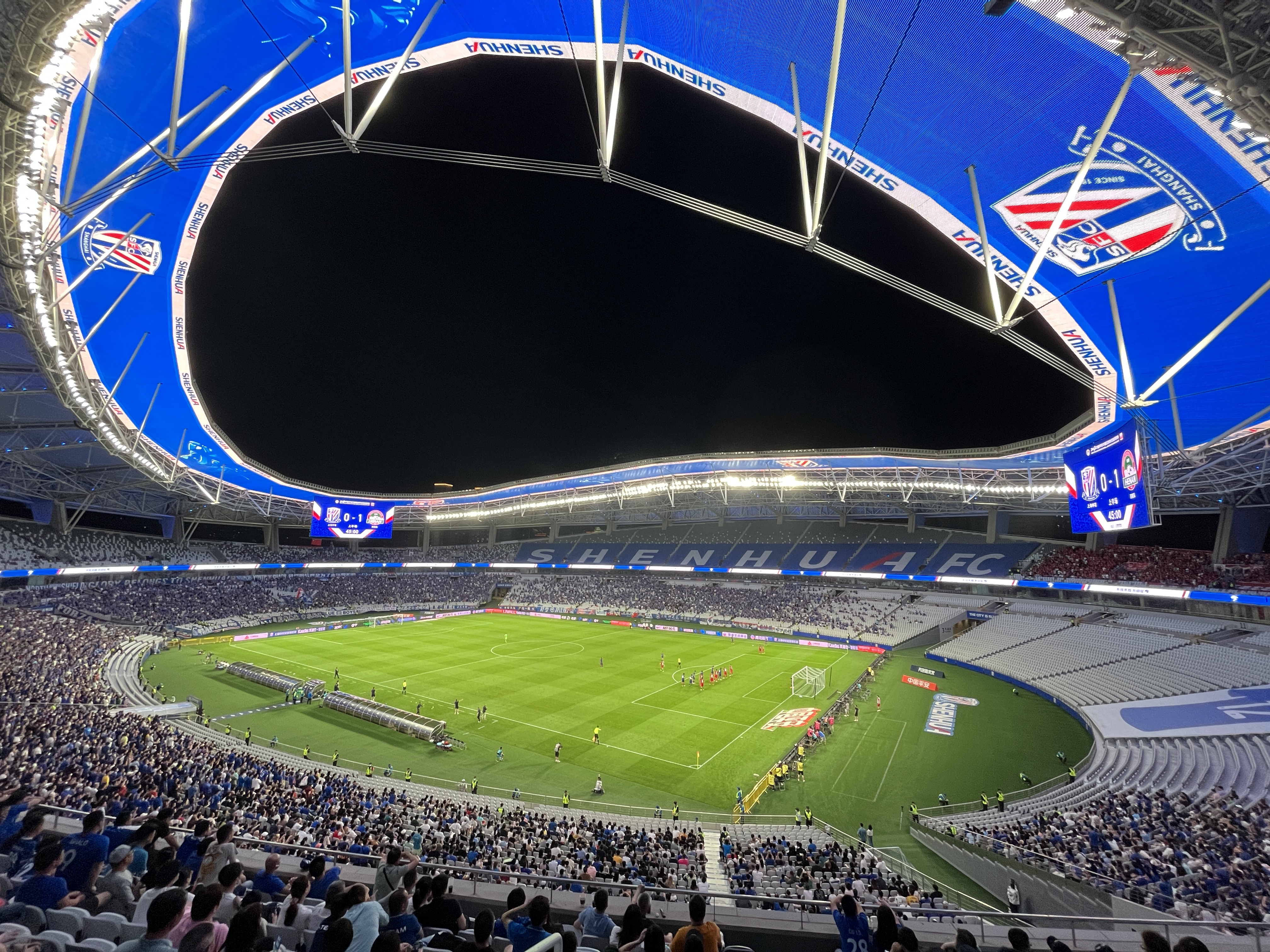申花本赛季搬到了上海体育场,环形天幕炫酷吸睛。劳动报记者贡俊祺 摄影