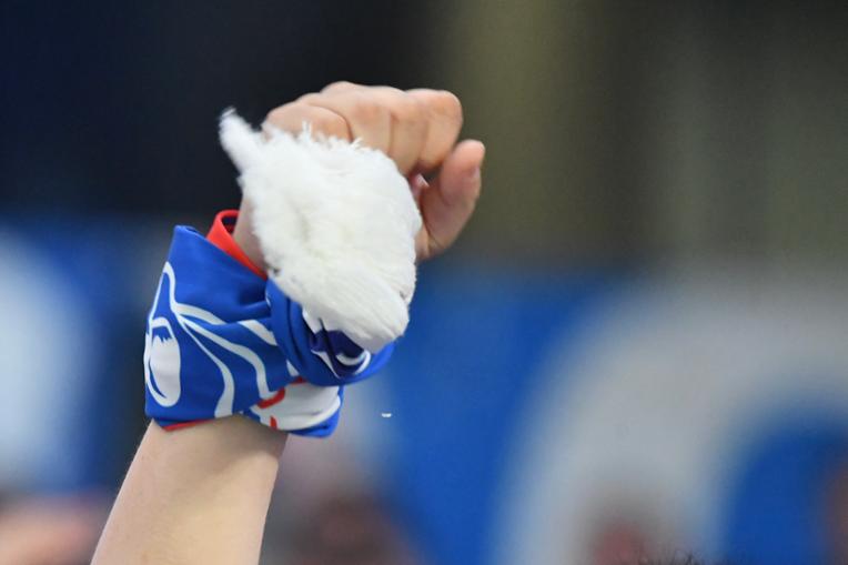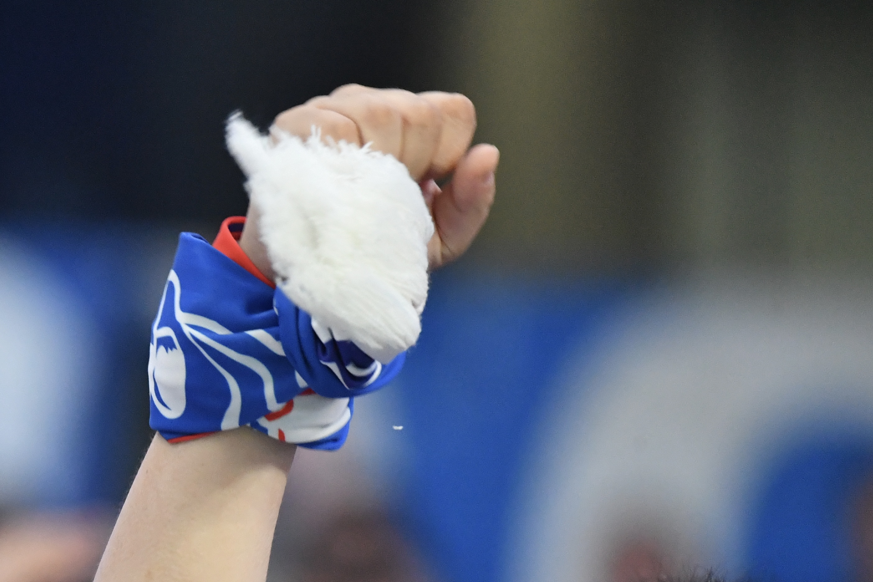 围巾绑在手臂,拼搏战斗到底。劳动报记者贡俊祺 摄影