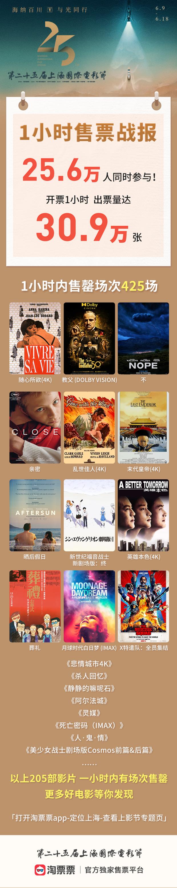 作为每年上海国际电影节开启的重要标志性节点,“开票”堪称一场影迷的狂欢。今年也不例外,6月2日中午12点整,时隔两年再度回归的上影节网络售票窗口一经开通,短短一小时就有25.6万人同时涌入,出票量达到30.9万张。