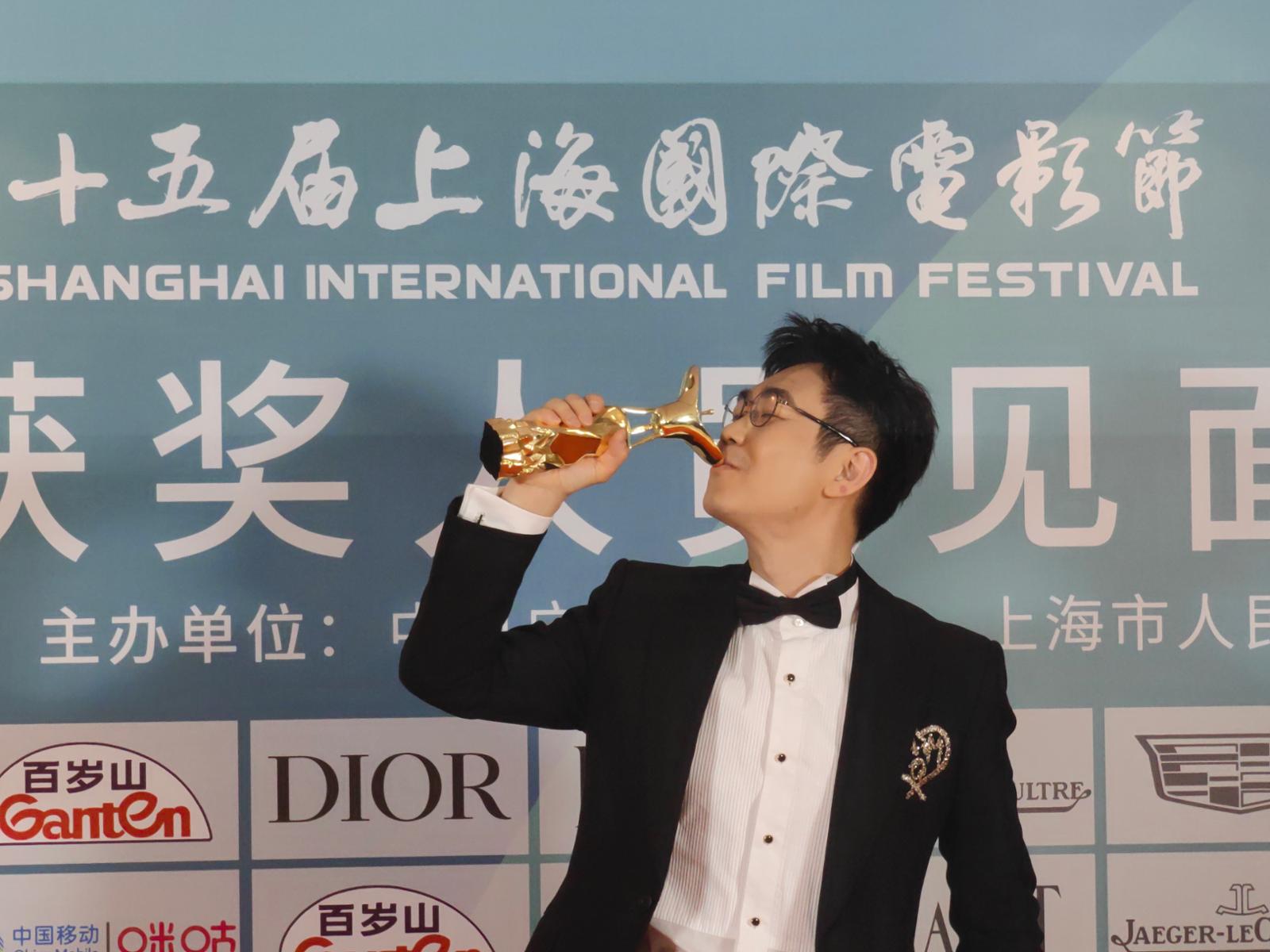 原来,十多年前,他也曾是一名记者,来过上海国际电影节采访报道。当时因为穿了短裤,还被保安大叔调侃“不尊重电影”。等到2015年,大鹏已经带着《煎饼侠》走上了上影节的红毯,他看向旁边的媒体区时,“好像看到了当年的自己。”那一年,他在上海捧起了第18届上海国际电影节之第12届电影频道传媒大奖最佳新人导演奖。