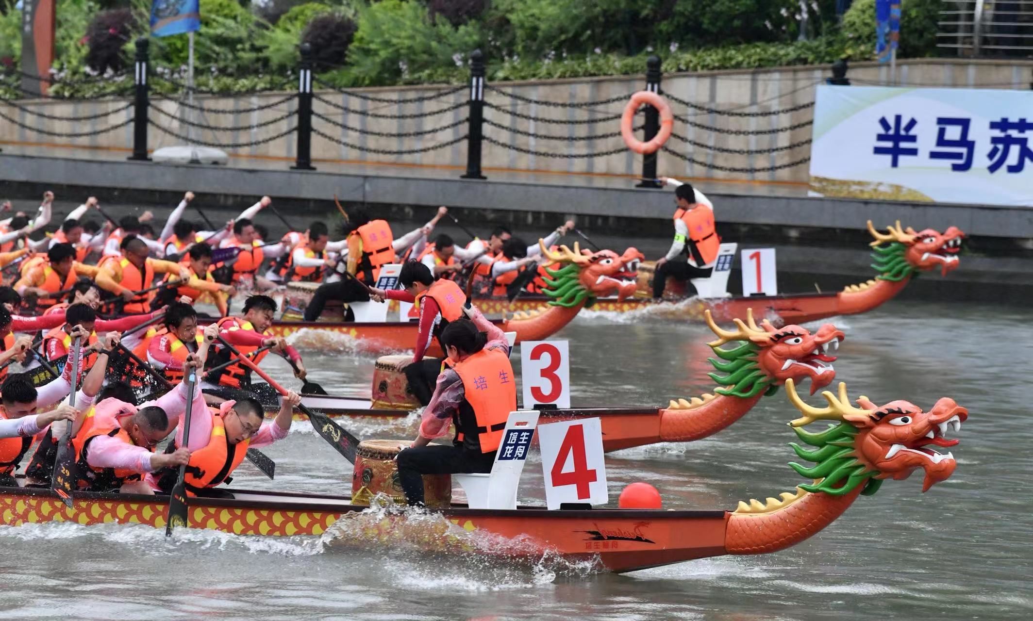 挥“乘风破浪”之桨,敲“齐心协力”之鼓,立“奋勇争先”之潮。赛事组委会精心组织策划,成就了一届精彩、安全、高质量的龙舟大赛。