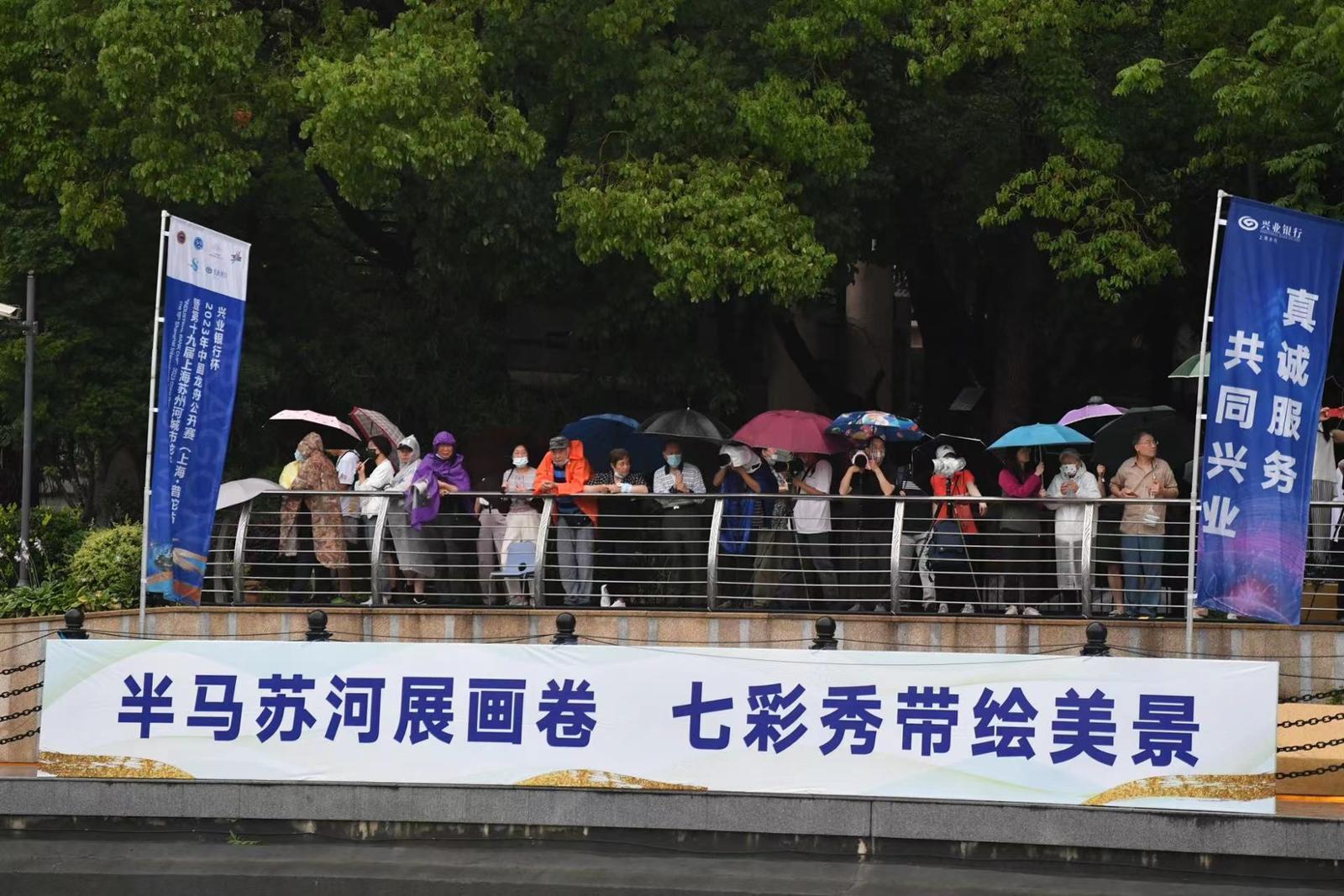 雨天比赛,桥上也围观了不少市民。劳动报记者贡俊祺 摄影