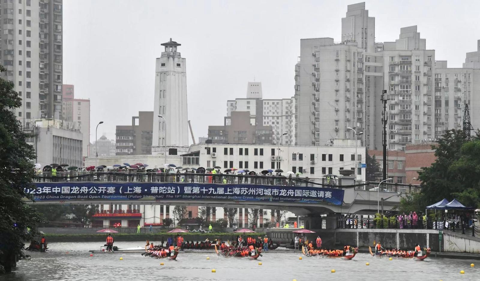 虽然是雨中竞赛,却更加突显了龙舟赛“风雨同舟”的意义。6月18日,“兴业银行杯”2023年中国龙舟公开赛(上海·普陀站)暨第十九届上海苏州河城市龙舟国际邀请赛在苏州河中远两湾城·梦清园水域落下帷幕。风景绝美的苏河之畔,52支国内外高水平龙舟队奏响了一曲乘风破浪、奋楫争先的“水上交响乐”。