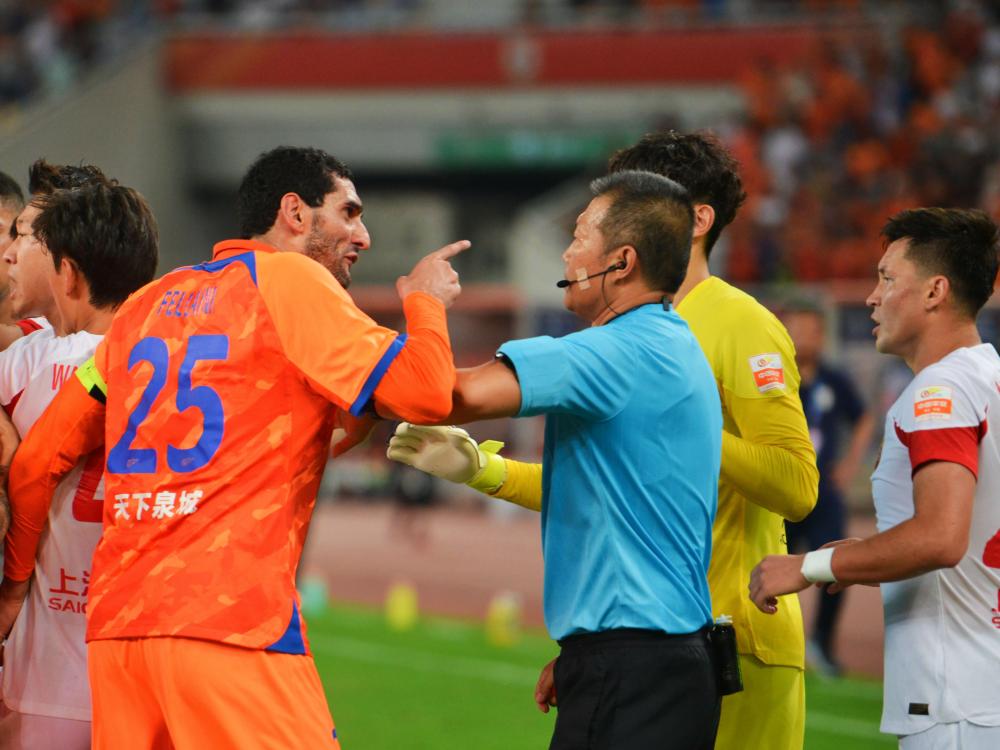 泰山外援费莱尼指责裁判。央视网体育图