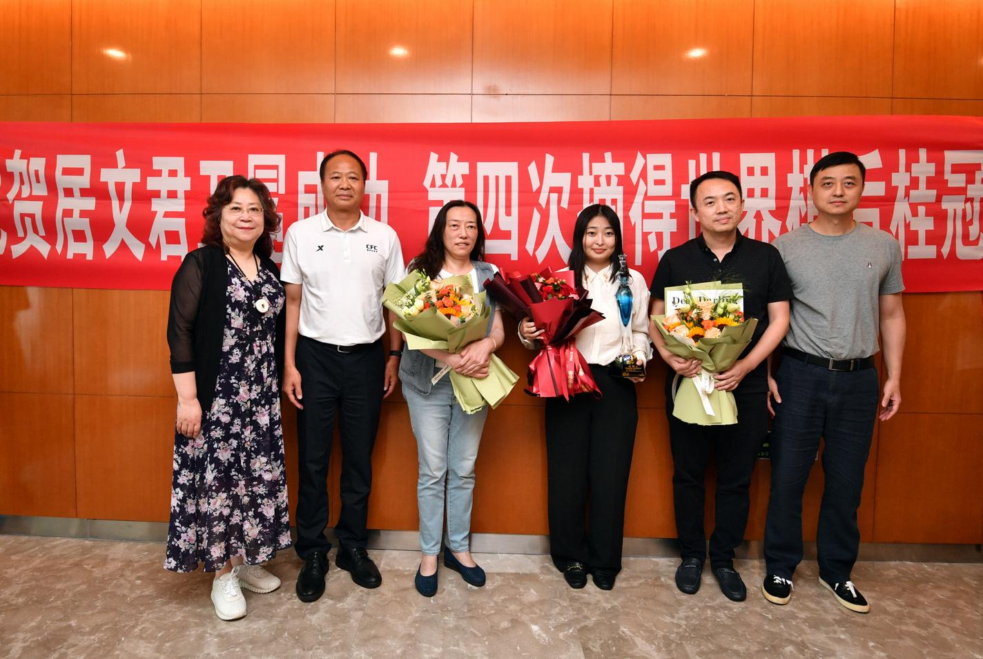 上海市体育局领导和上海棋院领导迎接居文君凯旋。章昊豪 摄影