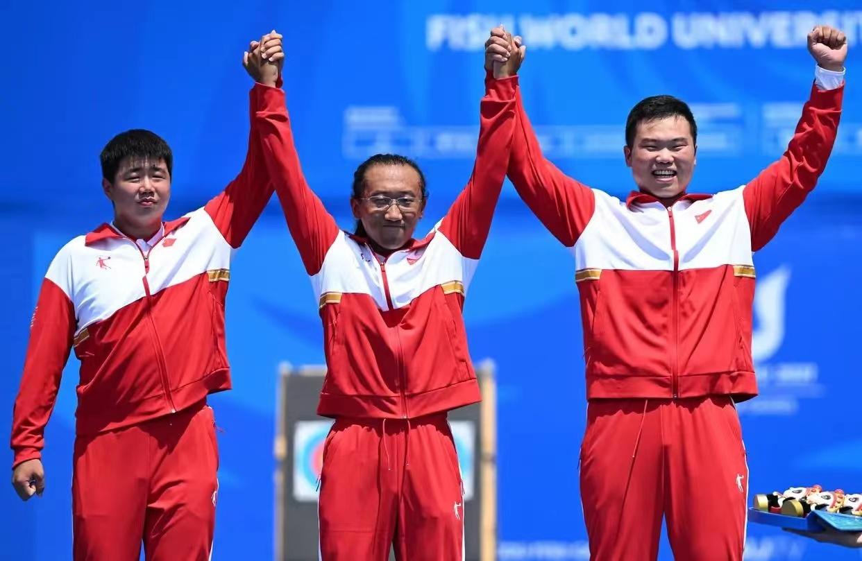 中国射箭队斩获成都大运会复合弓男团冠军。新华社图