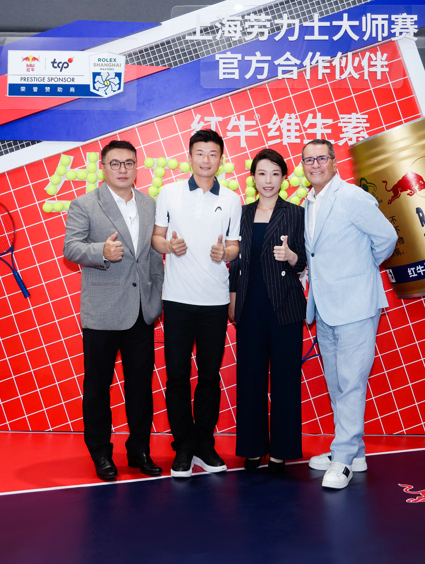 网球名将郑洁、吴迪、上海大师赛赛事总监吕华勇、红牛代表王道一起。官方图