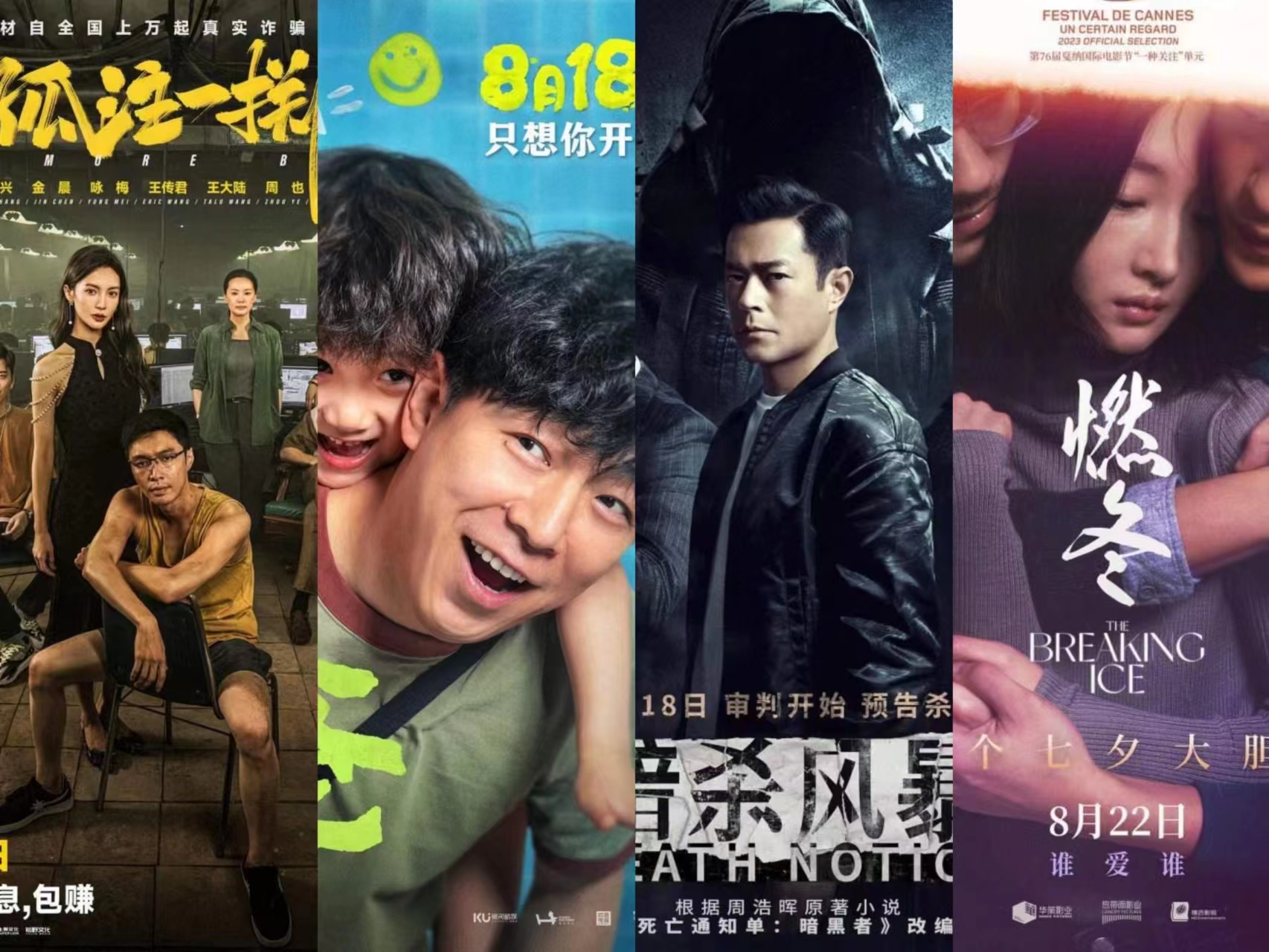 同时,由黄渤监制并主演、聚焦“幼升小”教育主题的剧情片《学爸》,入围第76届戛纳电影节“一种关注”竞赛单元的爱情片《燃冬》,根据高分推理小说《死亡通知单:暗黑者》改编的悬疑片《暗杀风暴》等,也都将在八月中下旬登陆大银幕。