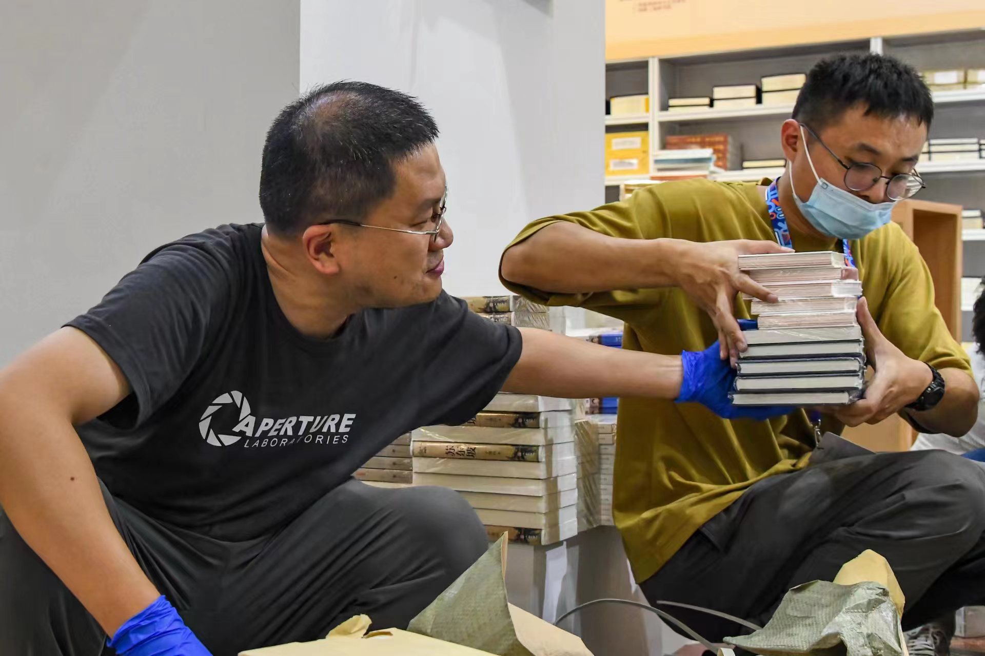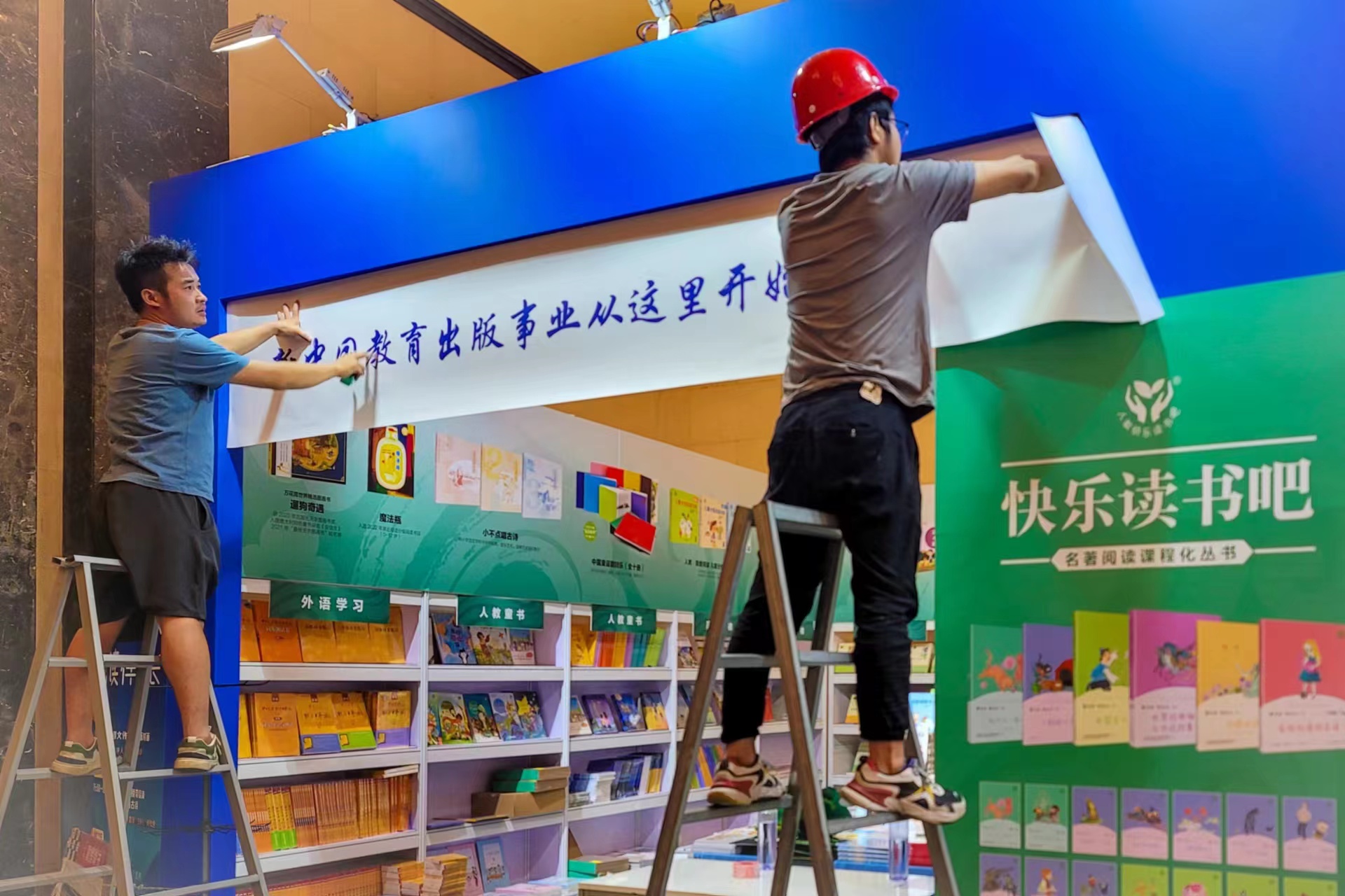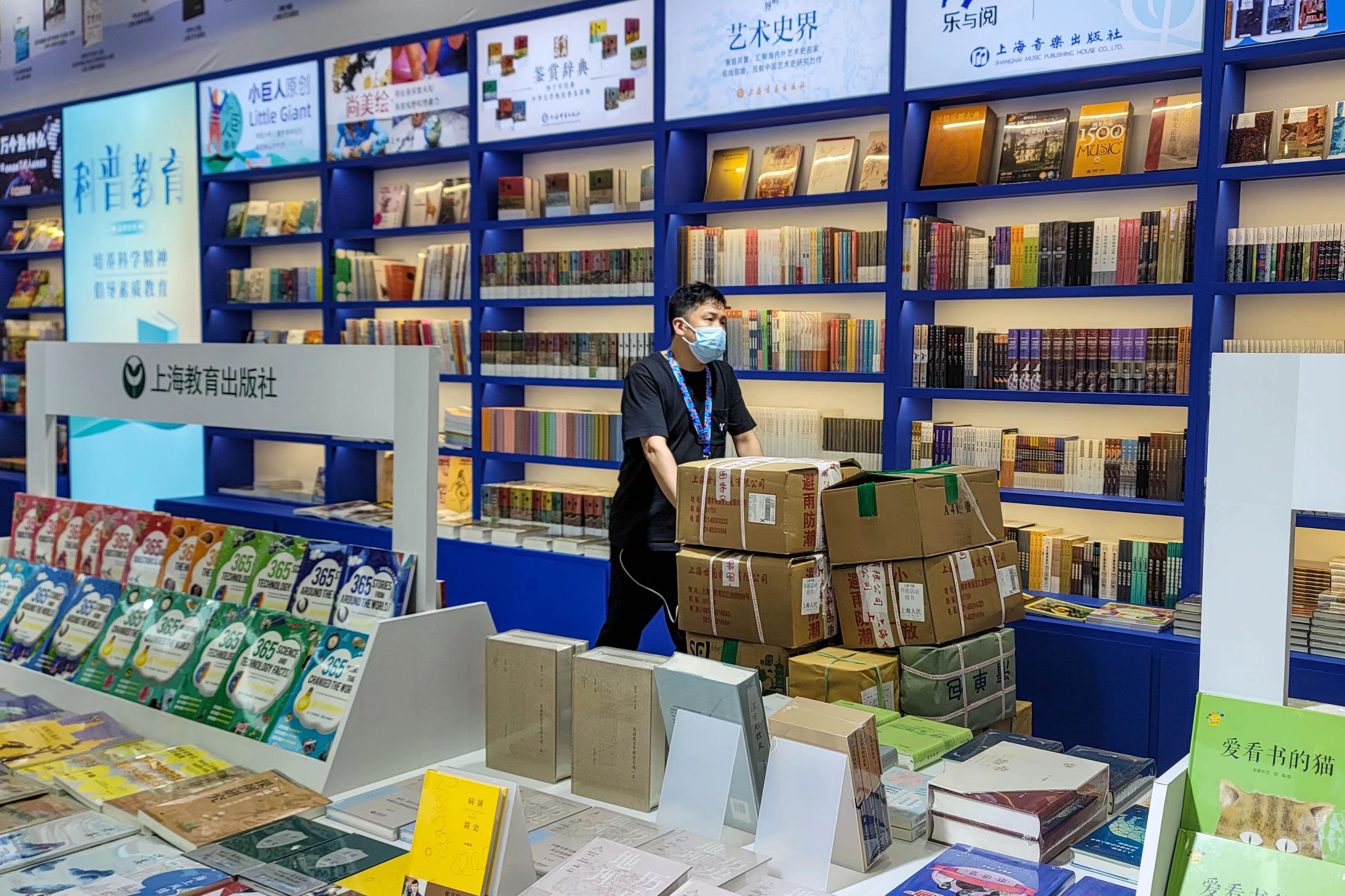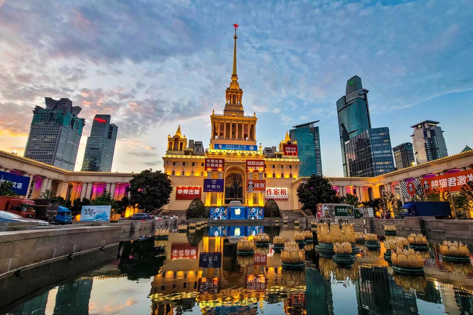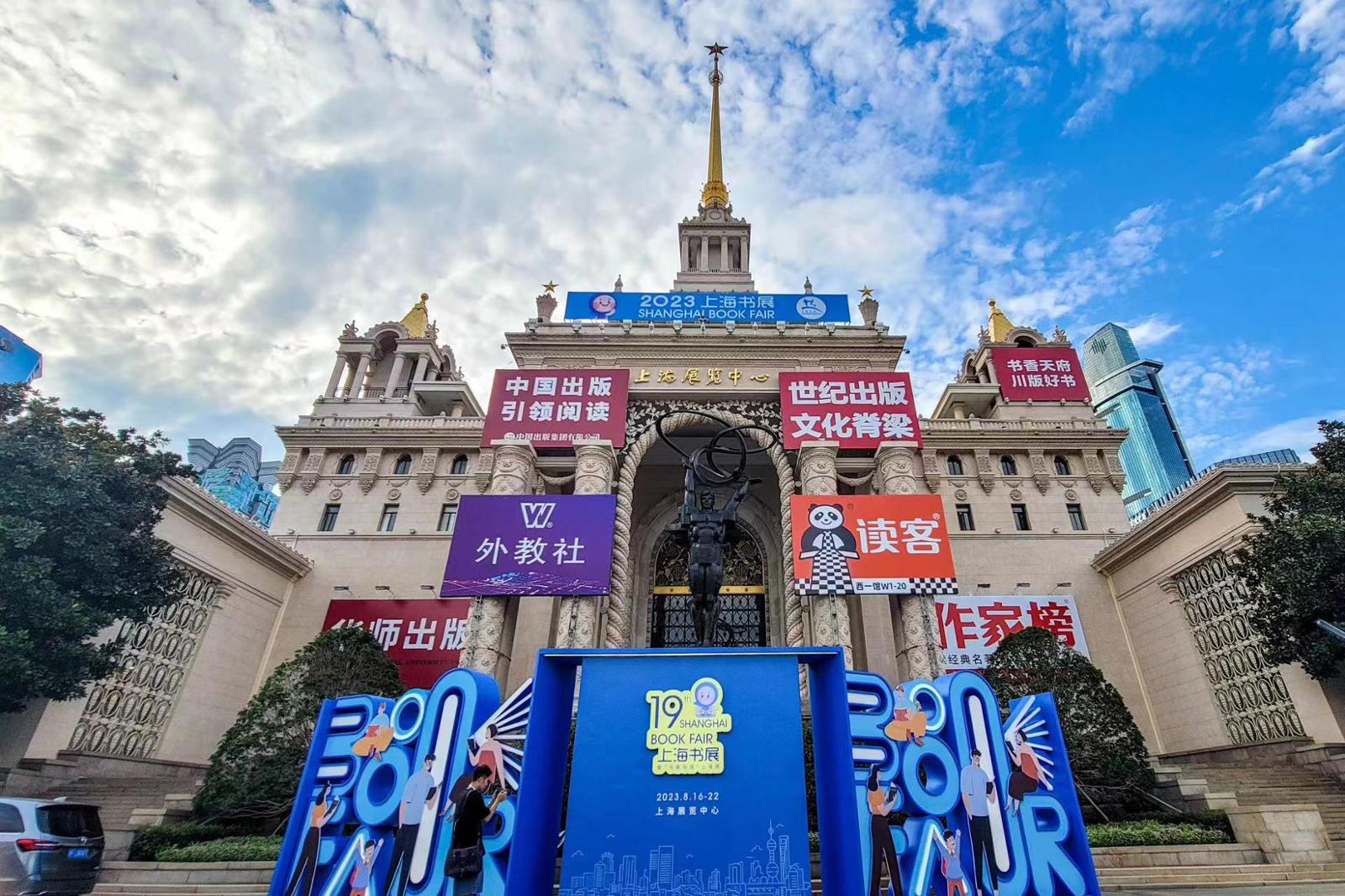 头图为2023上海书展所在的上海展览中心外景,图中照片为布展现场。劳动报颜筱依 摄影