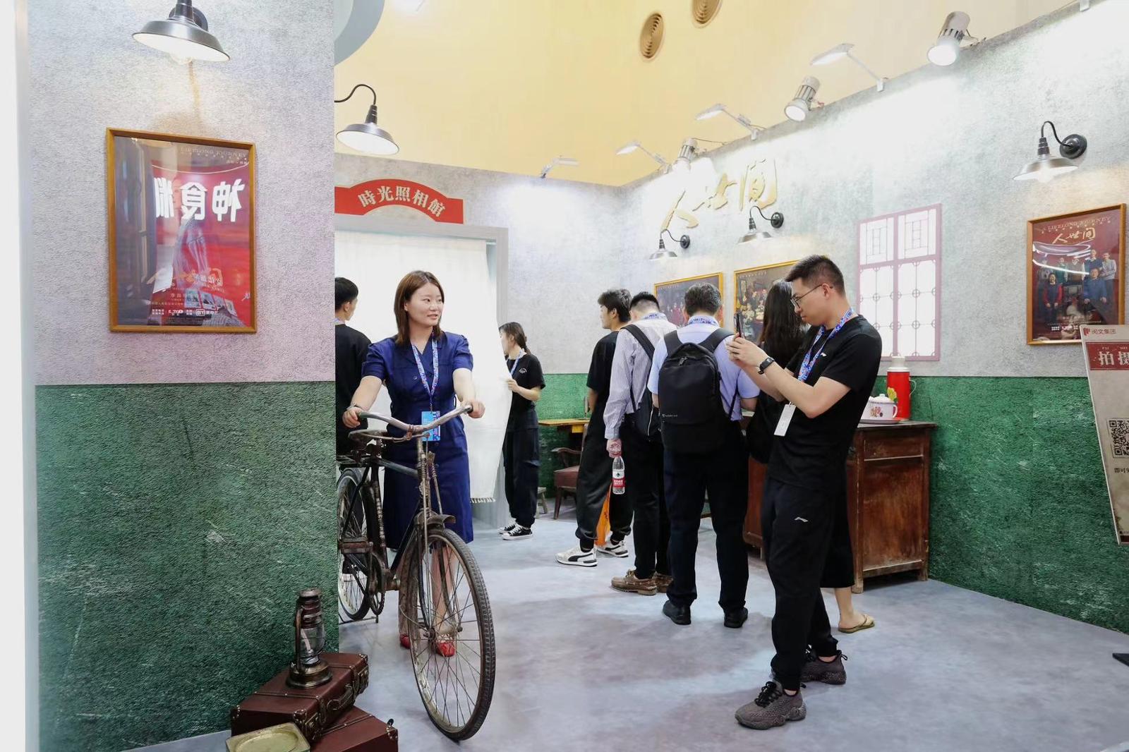 在未来阅读展区,走进一间风格复古的“时光照相馆”,老式的家具、昏黄的路灯、锈迹斑斑的二八大杠自行车,在这里,你可以免费得到一张《人世间》同款证件照。这里是阅文“IP时光穿梭机”的其中一站。