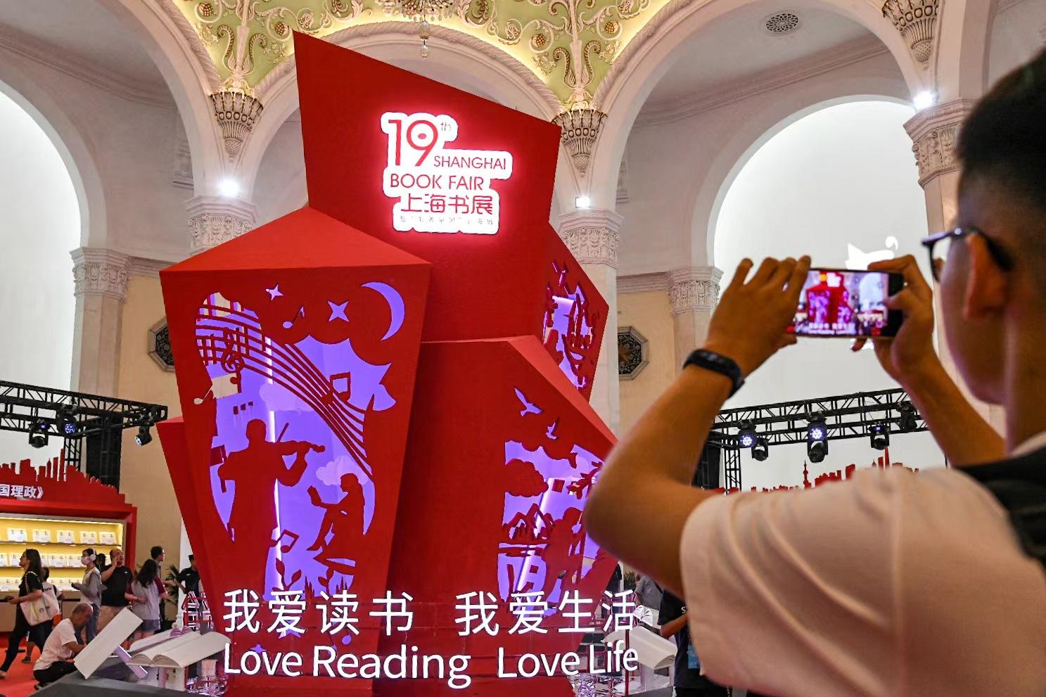 图为读者在2023上海书展序厅拍照。劳动报颜筱依 摄影