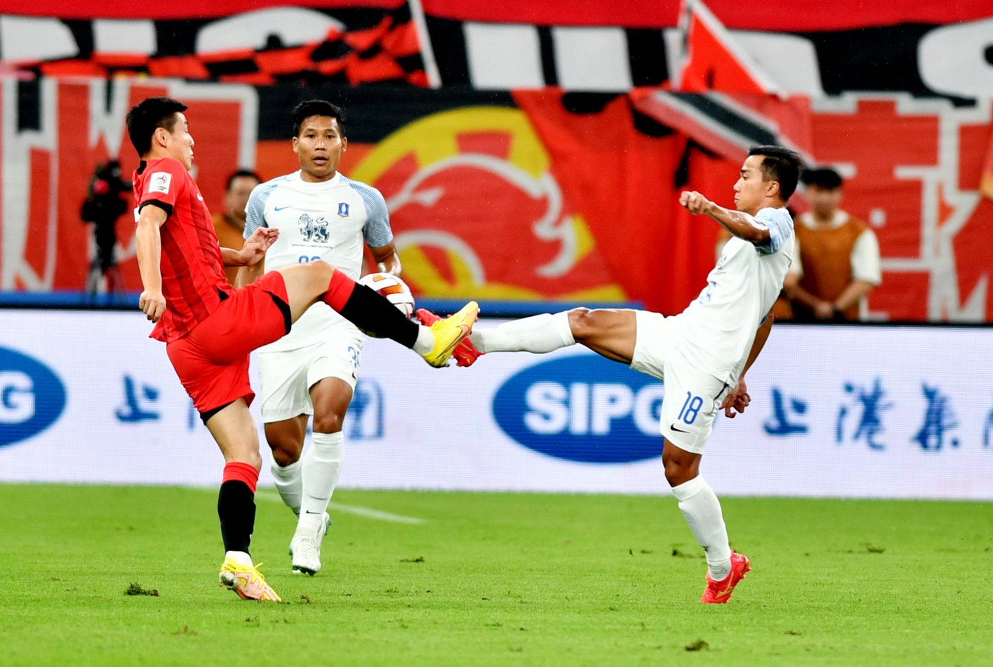 被动的情况下,哈维尔在中场休息派遣巴尔加斯和李帅出场,希望能够用速度撕开对手的防线。但因为高中锋若昂下场,海港虽然两条边路有了更多传中机会,但中路却无人抢点。反而是让泰国球队在第61分钟由谢尔盖耶夫上演帽子戏法。