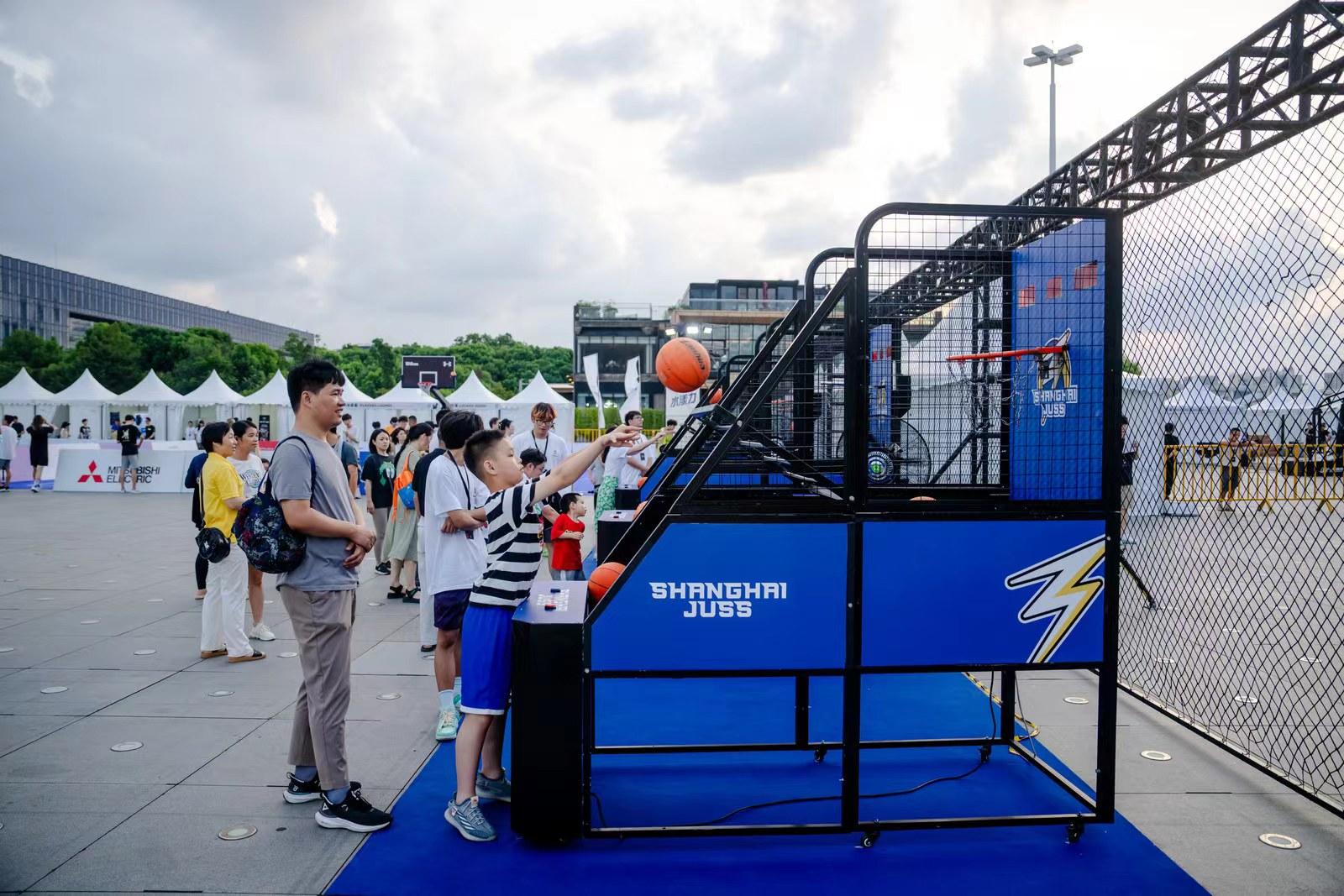 记者注意到,此次上海挑战赛,除了主赛场的比拼,赛场周边还有许多活动同样火爆。比如每次开场前的街舞秀、体育展示团队表演,吸引市民争相参与的投篮机挑战,以及半决赛之前的特邀表演赛和扣篮大赛等,不仅营造了沉浸式的参赛观赛氛围,也将篮球魅力移至街头,打造了一场城市体育景观,尽显上海蓬勃活力。