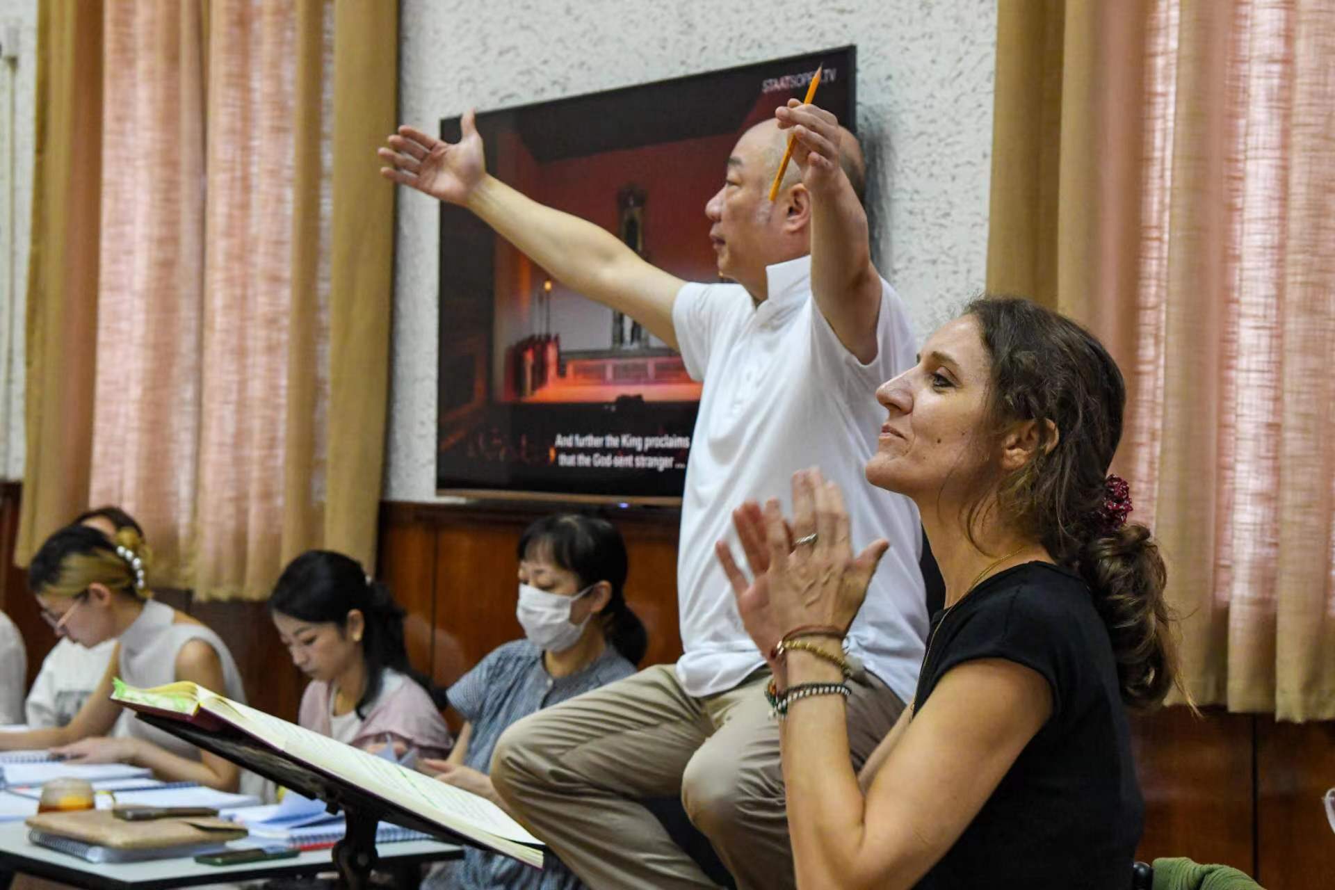 《罗恩格林》中的合唱体量十分巨大,德语的发音中很多辅音以及连读的重音,复杂的节奏旋律、和声的变化,对于初次接触作品的合唱团演员们来说都是十分巨大的挑战。“对上海歌剧院合唱团,尤其是男士们来说,经历了火一样的考验,基本上每个人都成为了独当一面的歌剧演员。”许忠说。上海歌剧院为合唱演员请来了合唱艺术指导马丁·怀特和声乐指导亚历山德罗·阿莫雷蒂,共同指导大家在语言和演唱上的不足,由他们逐字逐句地教授并纠正大家的发音,解析德语背后剧中人物的情绪,力求帮助演员们更好的展现出德语歌剧的原汁原味以及瓦格纳的魅力。