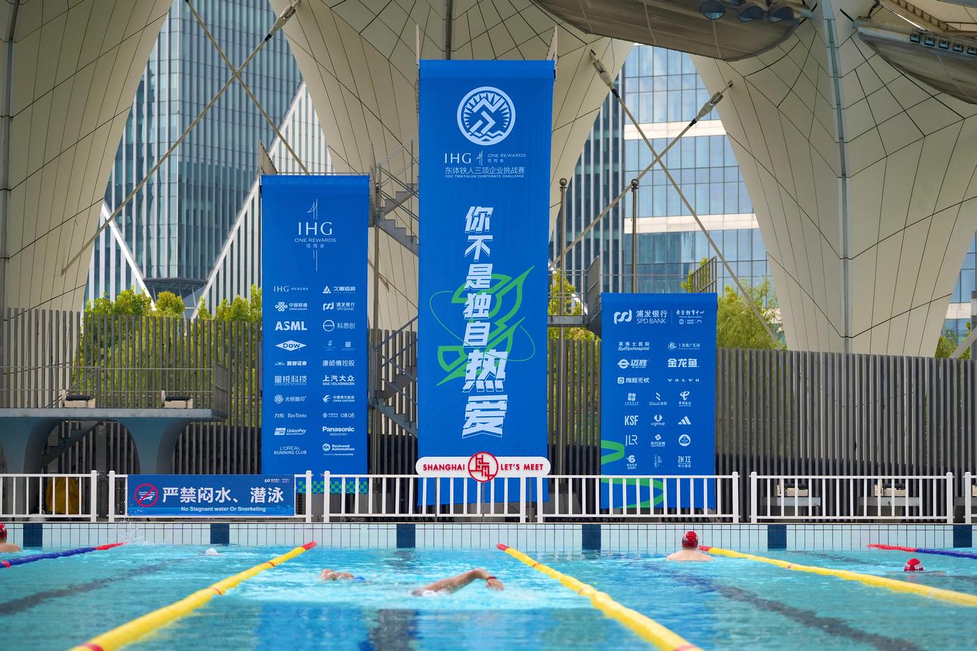 9月3日,上海城市业余联赛聚力前滩·2023IHG优悦会东体铁人三项企业挑战赛在东方体育中心月亮湾举行。