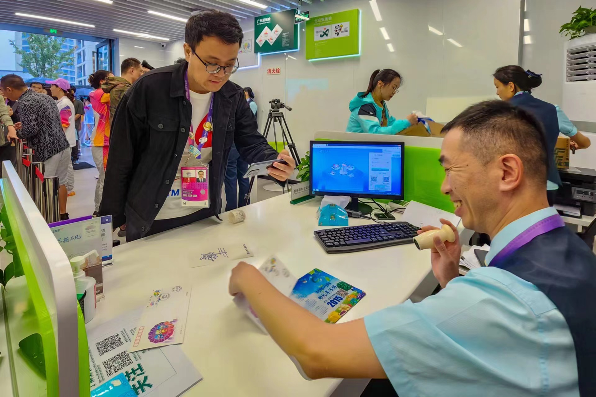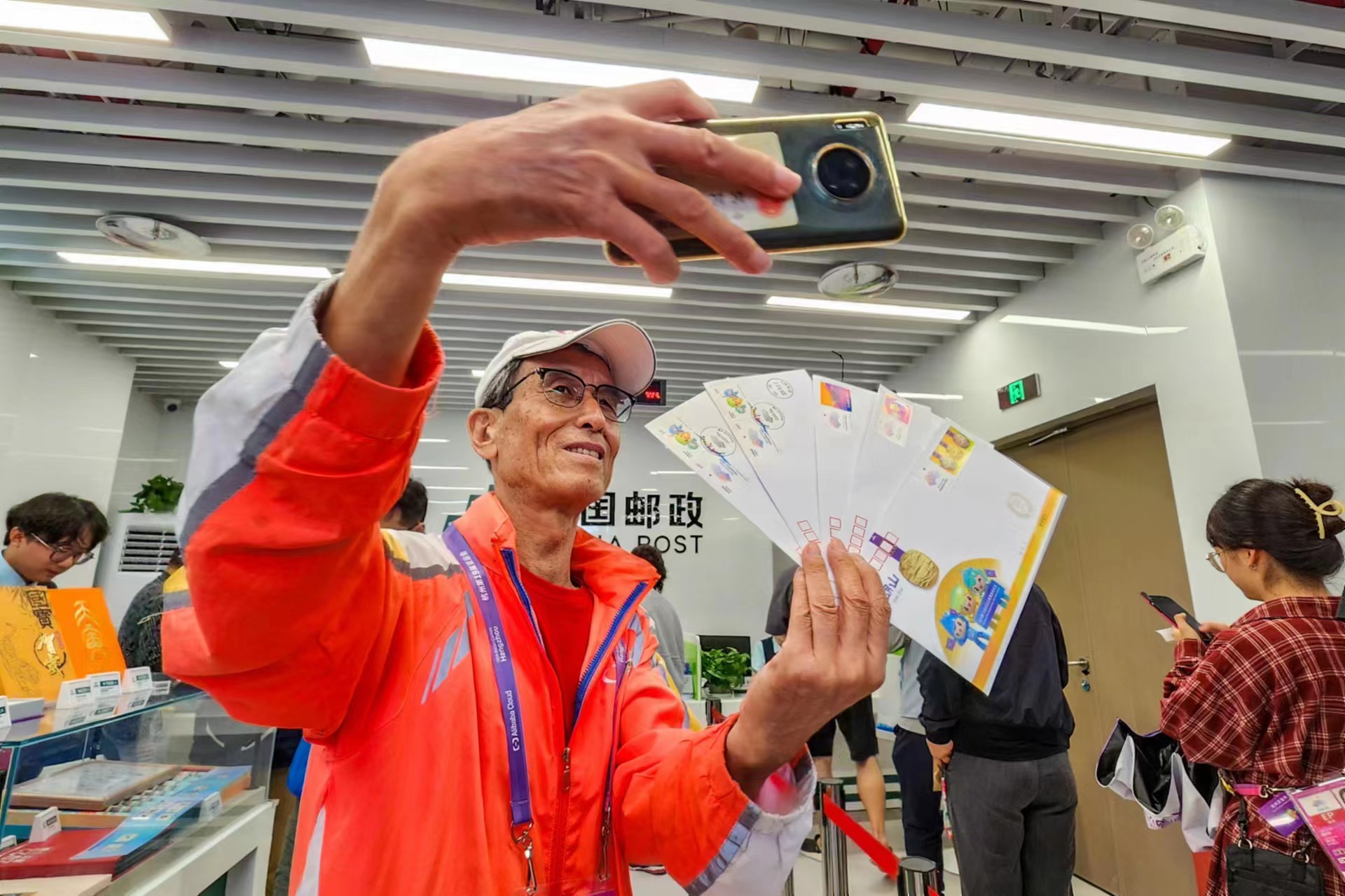 头图为观众买到首日封后兴奋地展示。劳动报特派记者颜筱依 摄影
