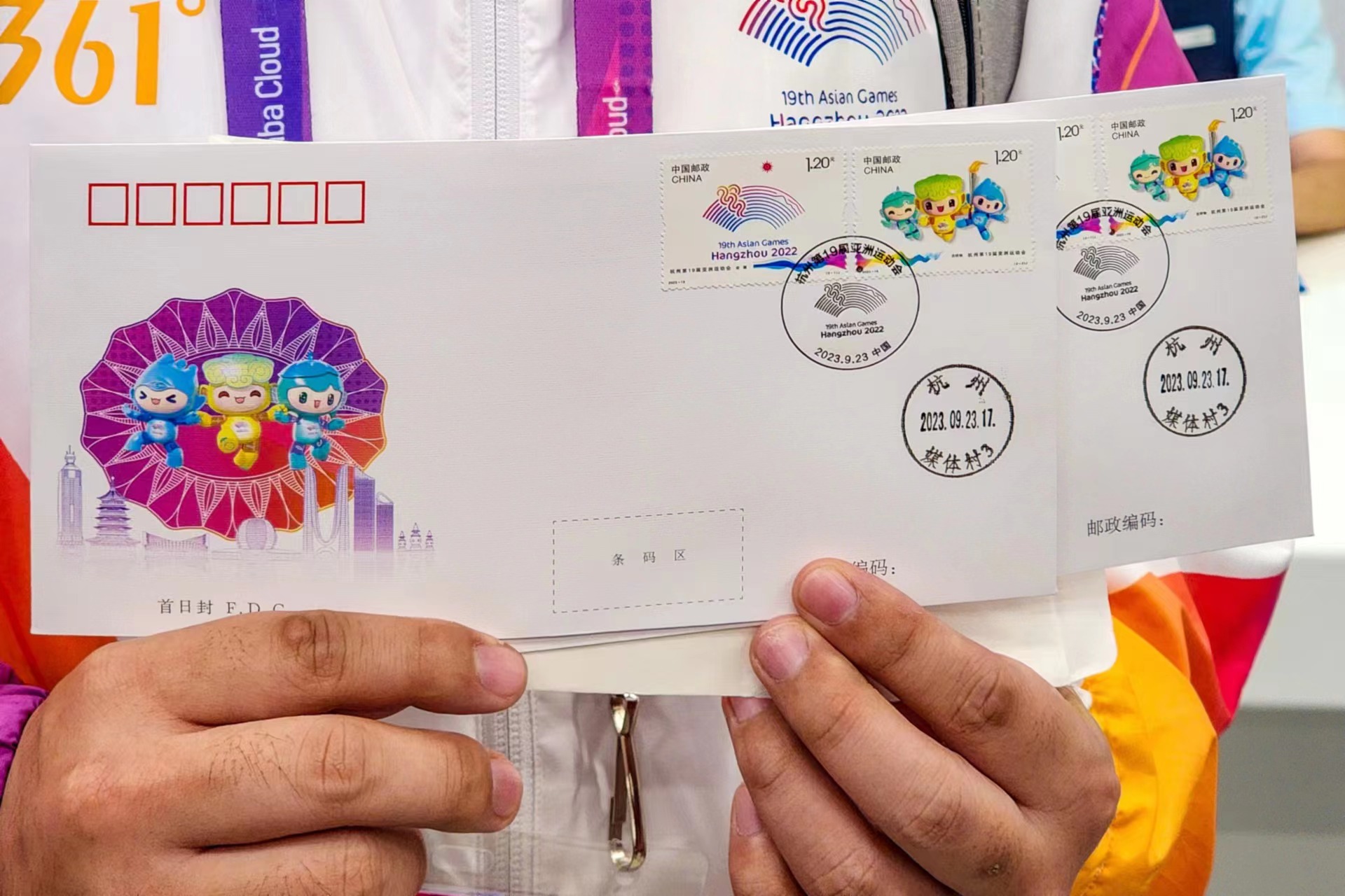 首日封充满亚运元素,也在各种细节处体现出杭州特色,例如齿孔就设计成三潭映月的元素。