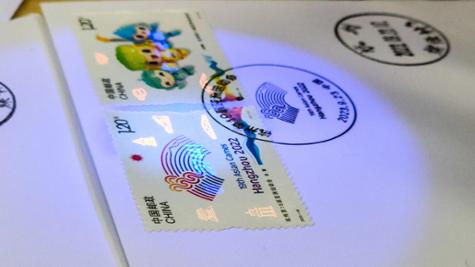 邮局工作人员正在为购买首日封者盖邮戳。劳动报特派记者颜筱依 摄影
