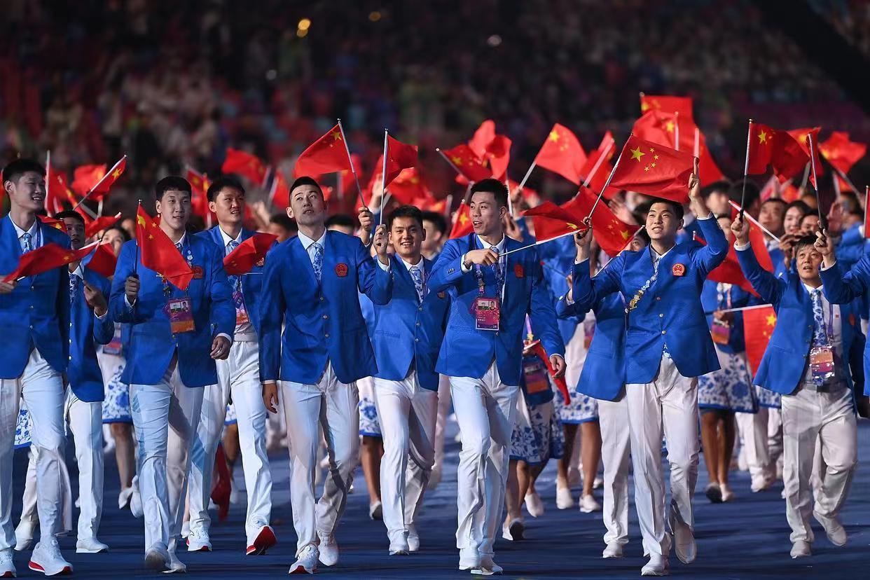 当然,当天最燃的还属中国体育代表团入场。20时50分许,伴随着《歌唱祖国》的歌声,中国队缓缓走入杭州奥体中心体育场,两位旗手覃海洋、杨力维走在方阵最前列,中国亚运代表团的运动员们依次走向场馆中央,现场瞬间爆发出雷鸣般的掌声与欢呼。