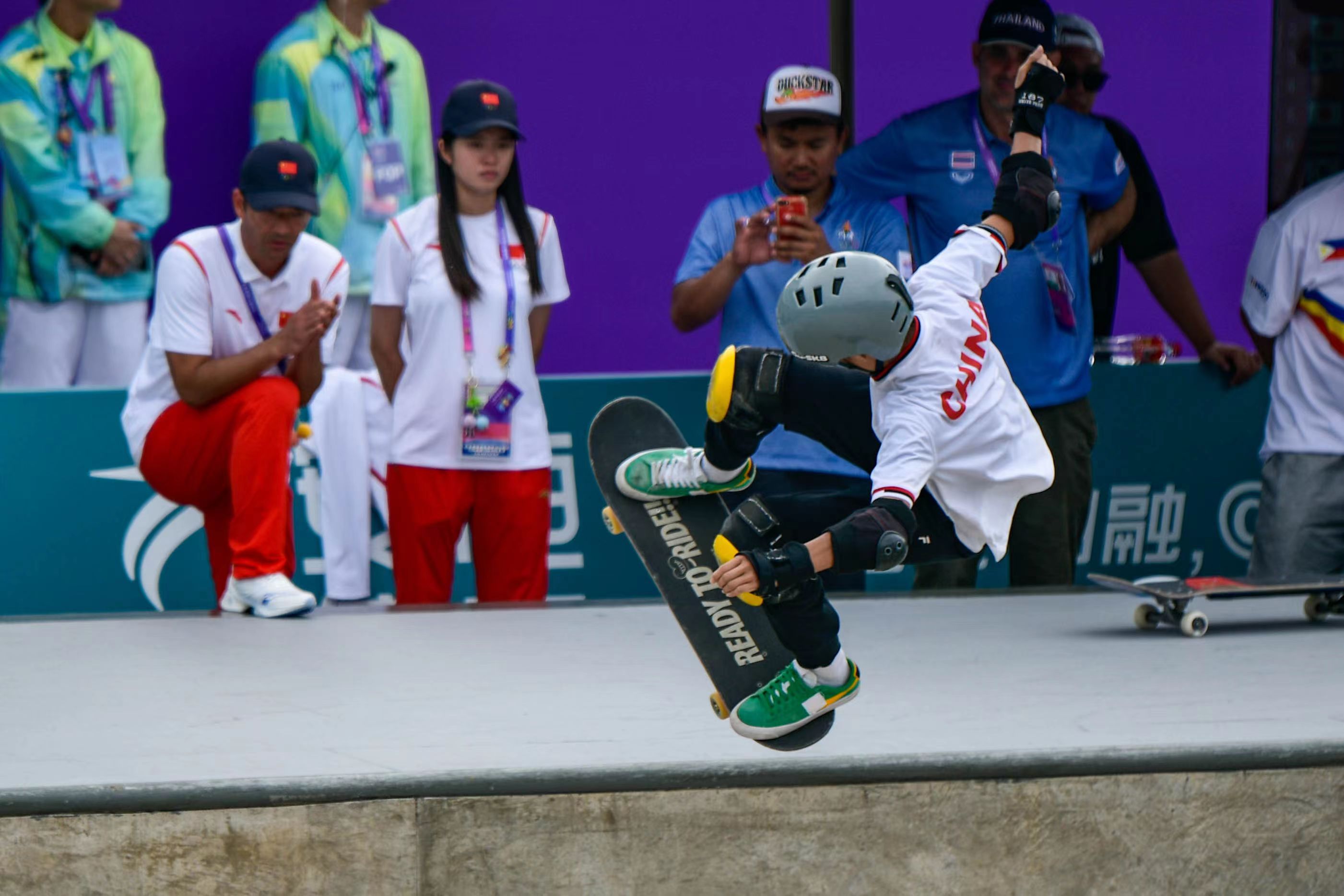 9月25日,杭州亚运会滑板项目男子碗池决赛在钱塘轮滑中心举行。经过三轮比赛的较量,中国选手陈烨以84.41分赢得冠军,创造中国亚运会历史最年轻金牌得主纪录,也是中国队在滑板项目世界大赛(奥运会、亚运会、世锦赛)中夺得的首枚金牌。另一位中国选手李明晓位列第6。