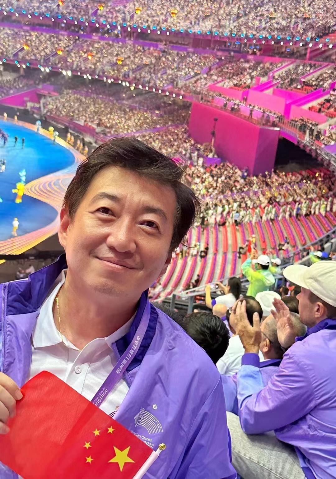 头图为田军在亚运滑板比赛工作现场。受访者供图