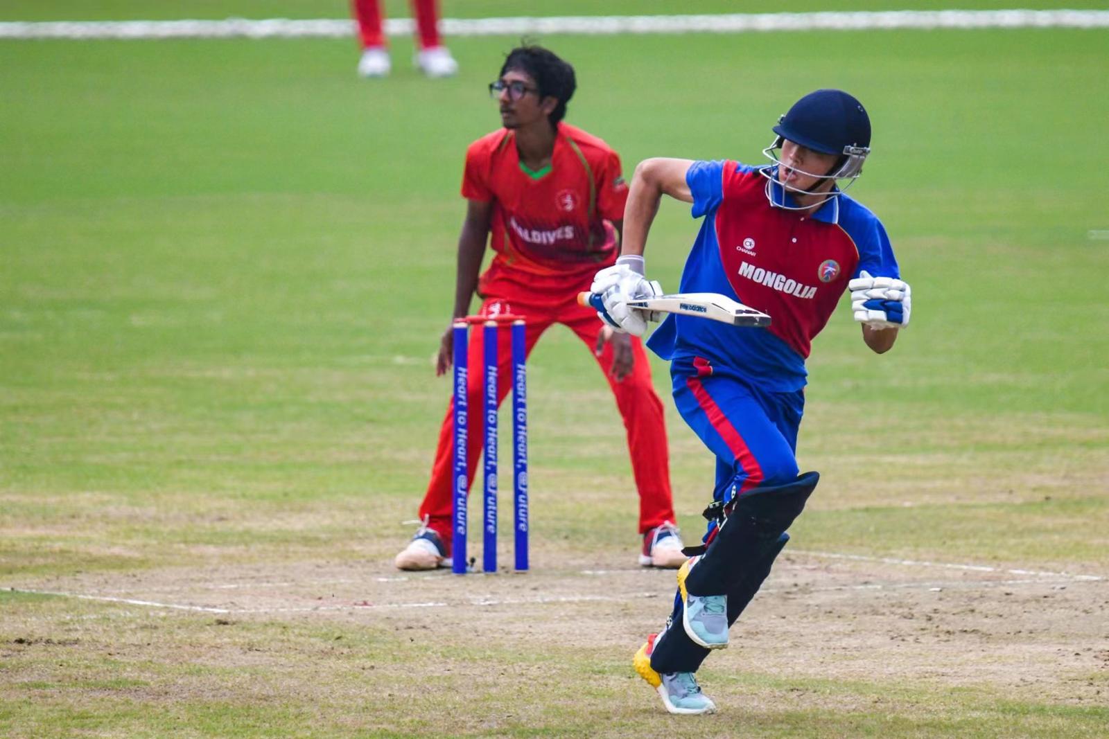 9月28日下午的男子板球小组赛,由马尔代夫队对阵蒙古队,虽然观众看得不是很理解,现场还是气氛很热烈。现场广播也及时发出提醒:“男子运动员力量较大,球飞到观众看台的时候千万不要接,很可能会导致手掌骨折……”