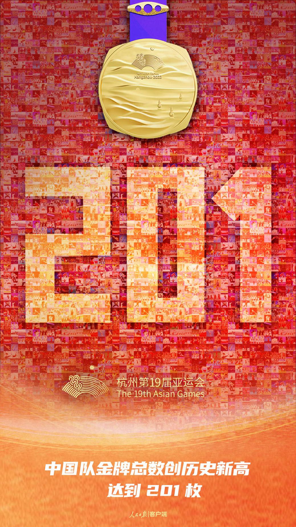 其中,一路领跑奖牌榜的中国代表团战绩颇丰,不仅18次刷新亚洲纪录、74次刷新赛会纪录,还3次打破世界纪录。10月8日,当花样游泳集体自由自选项目结束比拼,中国队以868.9676分成功卫冕金牌后,中国体育代表团也以201金111银71铜总计383枚奖牌的成绩完美收官,并狂创多项亚运纪录。