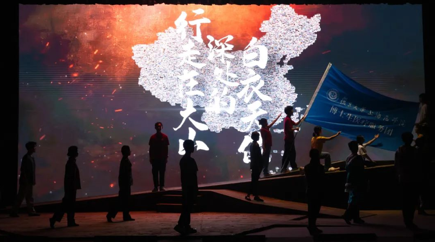据介绍,新编排的话剧以贵州剑河、宁夏西吉、青海玉树、云南永平等地发生的故事为背景,继续讲述博士生医疗服务团学习弘扬上医前辈“爱国奉献,服务人群”光荣传统的感人事迹。话剧由复旦大学上海医学院党委学工部编排创作,由学生出演。
