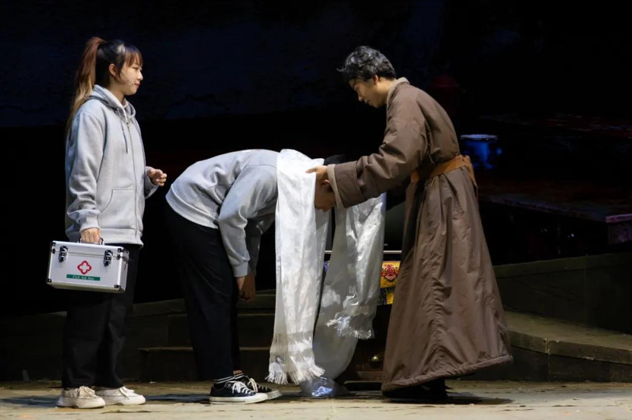 今年的话剧,还增加了博医团不久前在青海开展服务的新故事。生物医学研究院2023级硕士生李翀扮演赵思扬、德吉,他感概,“很荣幸能扮演博医团的一员,给观众展现这么优秀的医生形象,希望上医博医团的精神一直传承下去!”